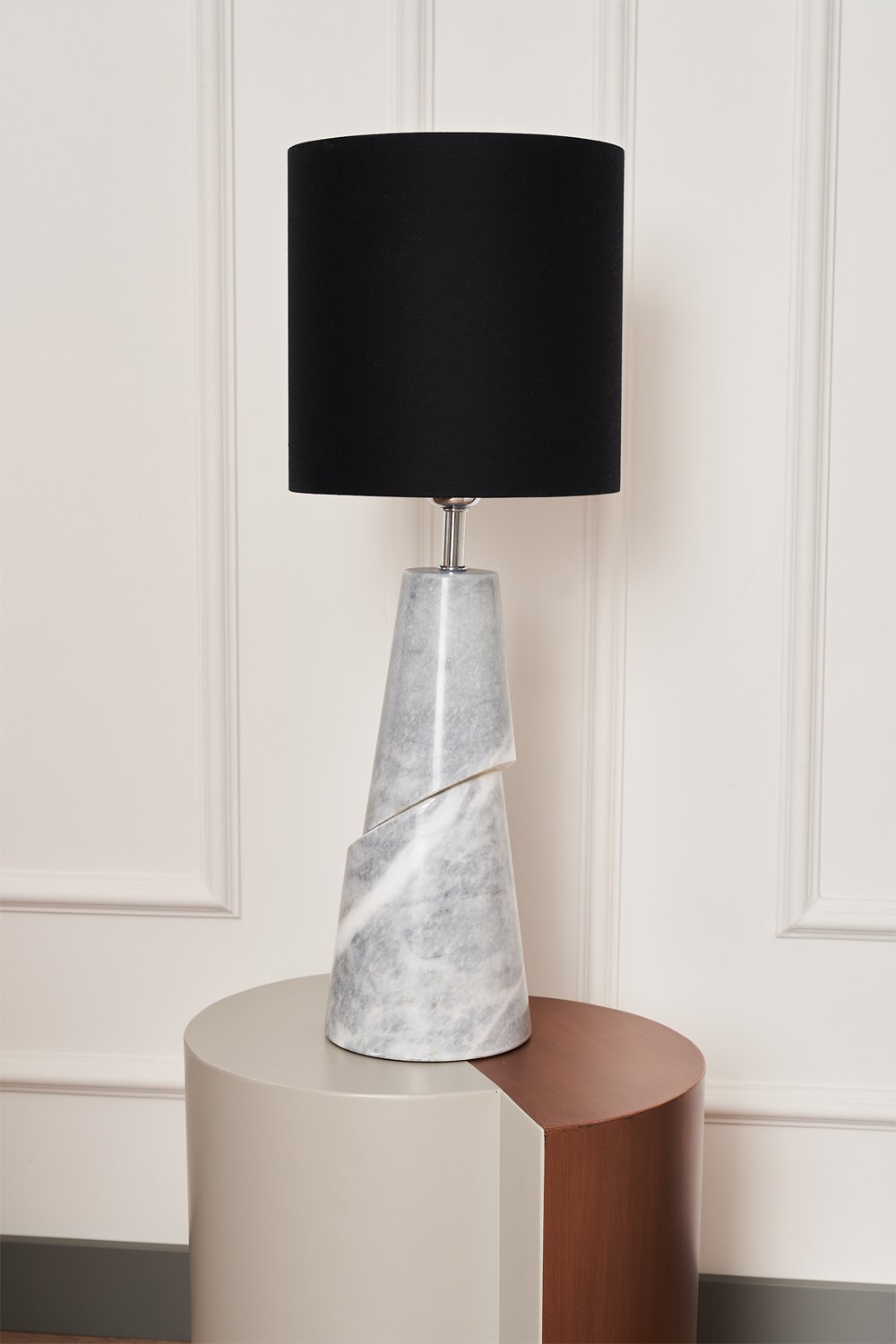 Iconic Gri Konik Mermer Abajur; modern dekorasyon anlayışına lüks bir dokunuş katmak için tasarlanmıştır