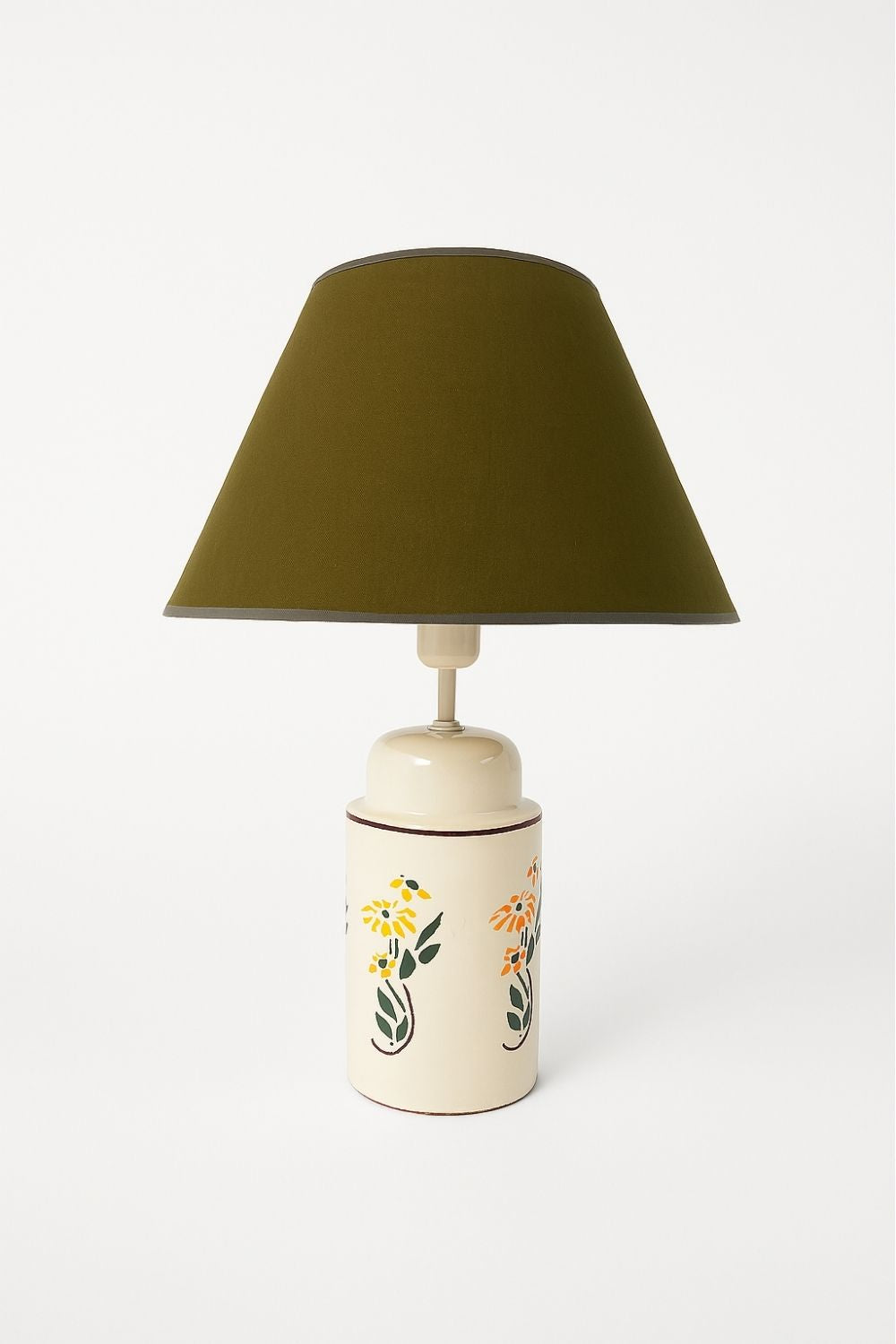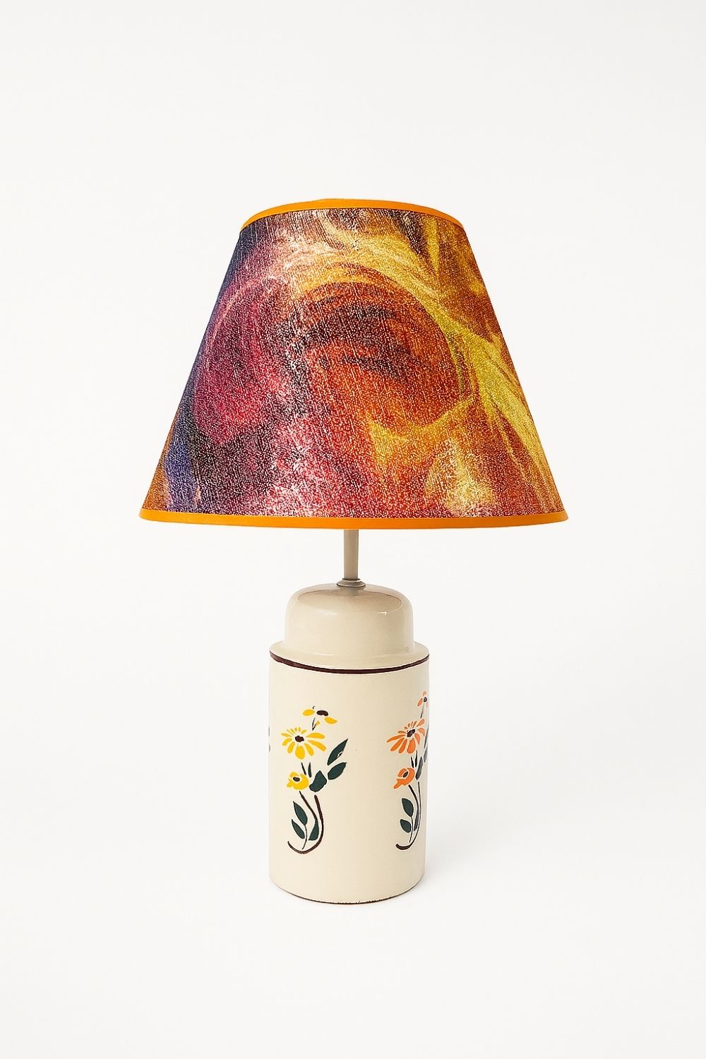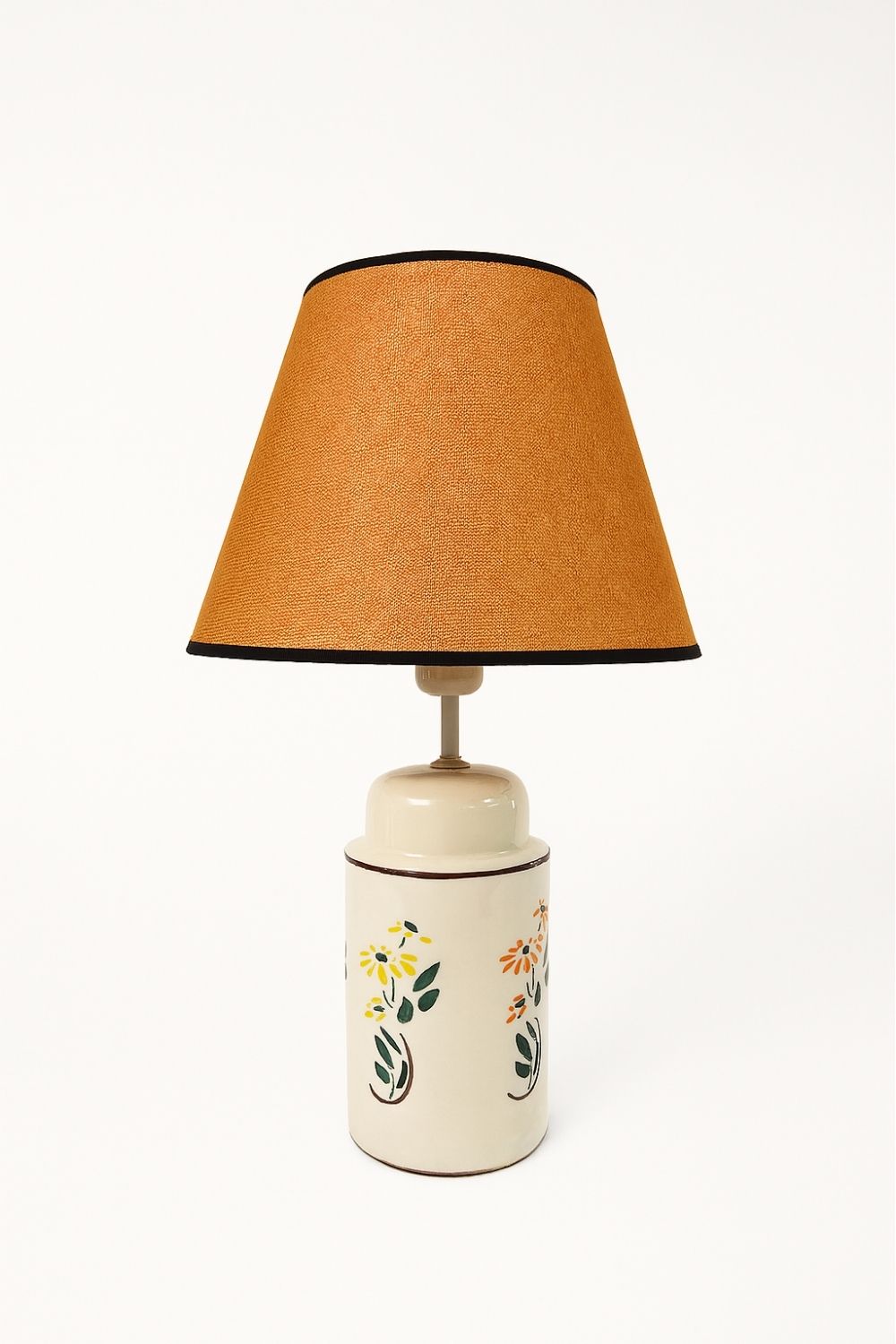 Daisy Abajur, doğal seramik gövdesi üzerine elde işlenen çiçek motifleriyle sade bir zarafet taşır. Her bir çiçek deseni, nostaljik yaz anılarını hatırlatırken mekâna sıcaklık ve neşe katar. Başlık rengi tercihinize göre değiştirilebilir; böylece her dekorasyona özel bir uyum sağlanır.