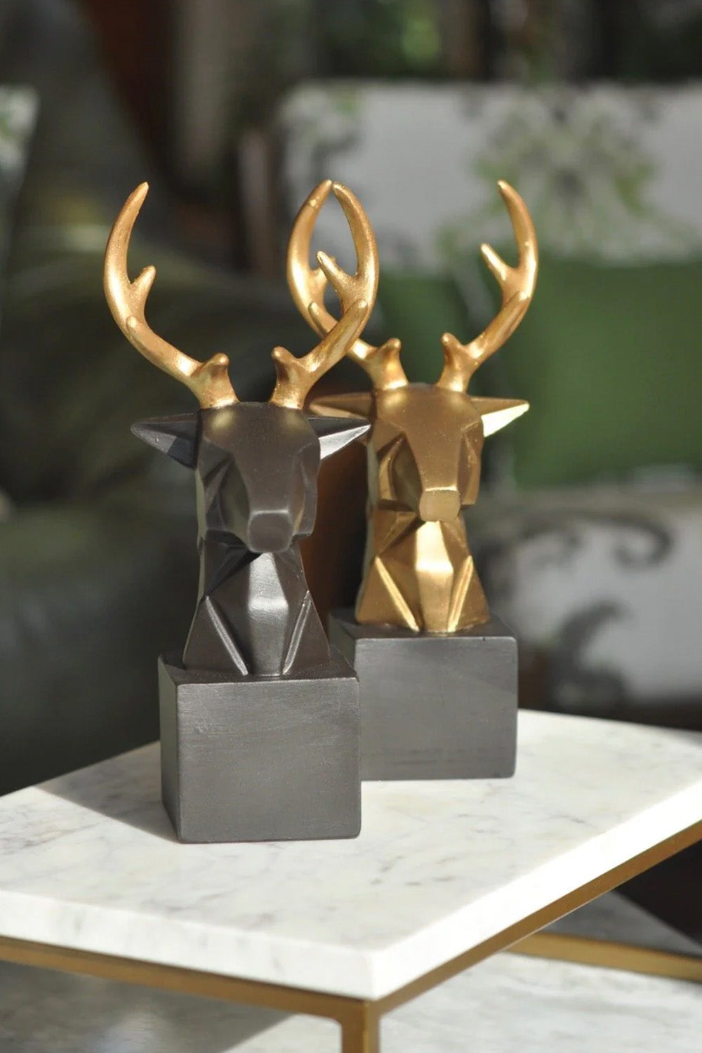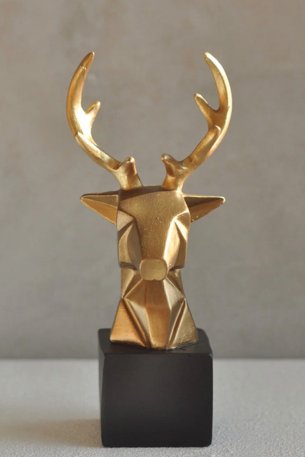 Dea'rt İstanbul Derya Kurdoğlu tasarımı Geyik Büst Obje, görkemli boynuzları, kübik kaidesiyle modern çizgilere sahiptir.