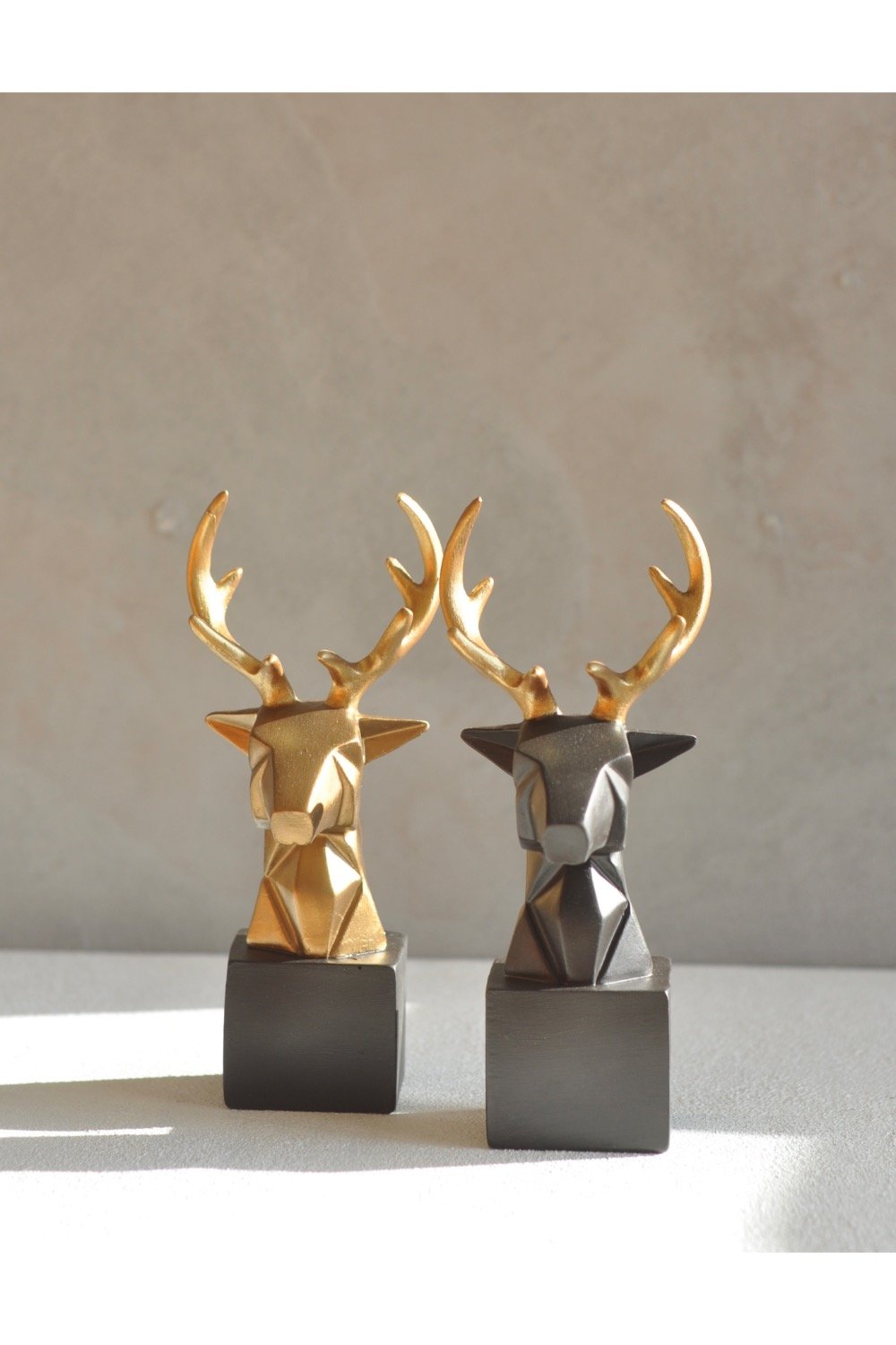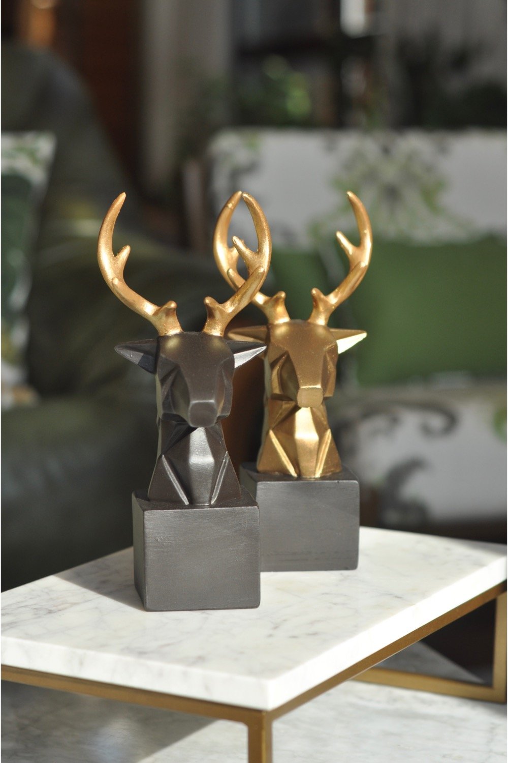 Dea'rt İstanbul Derya Kurdoğlu tasarımı Geyik Büst Obje, görkemli boynuzları, kübik kaidesiyle modern çizgilere sahiptir.