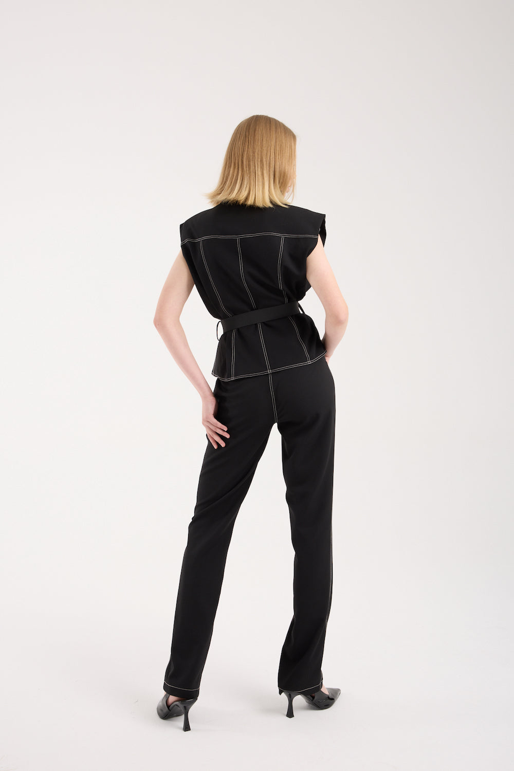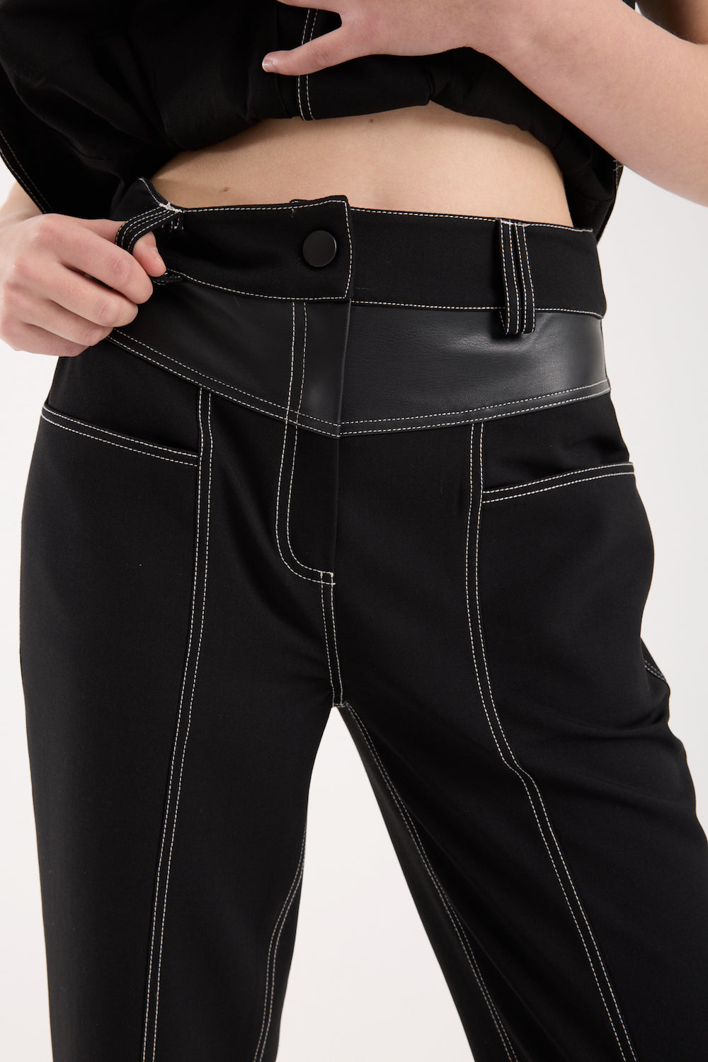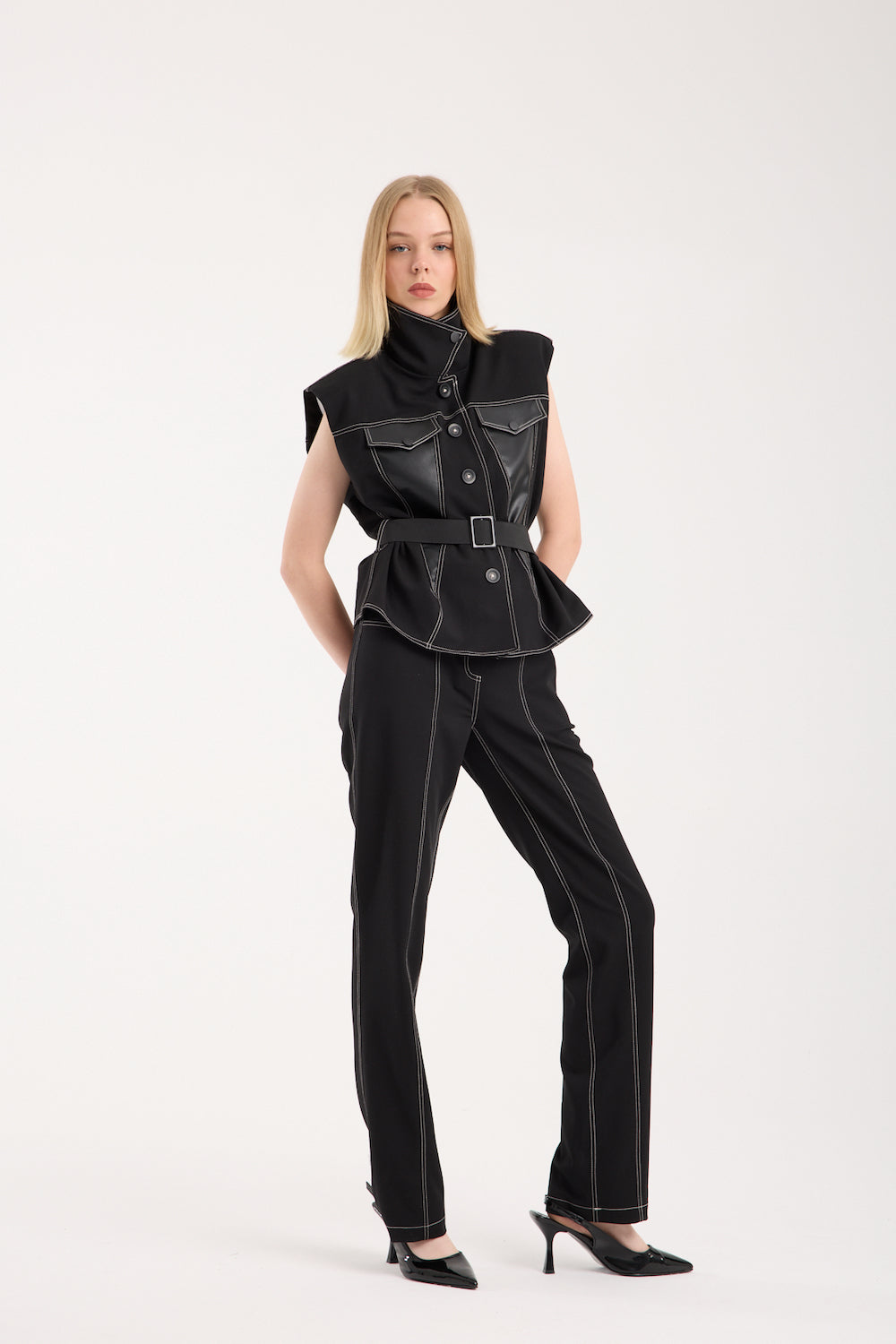 Obsidian Siyah Kontrast Ddikişli Şık Pantolon - Modern Fit