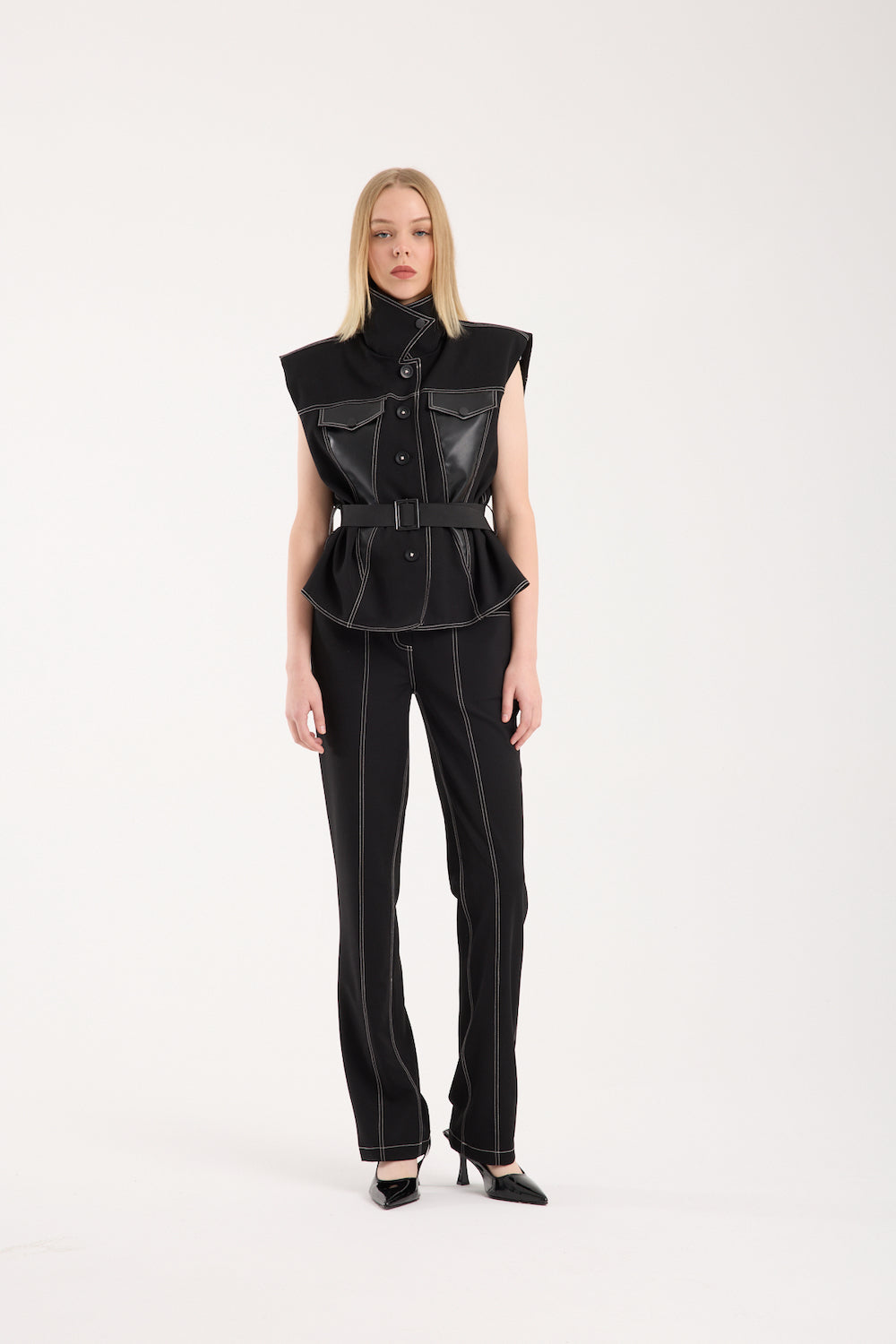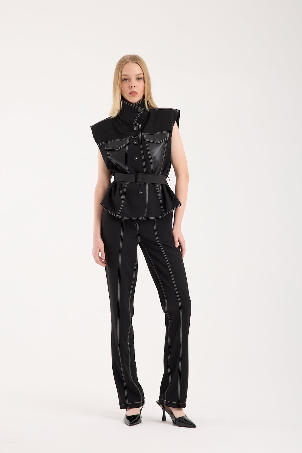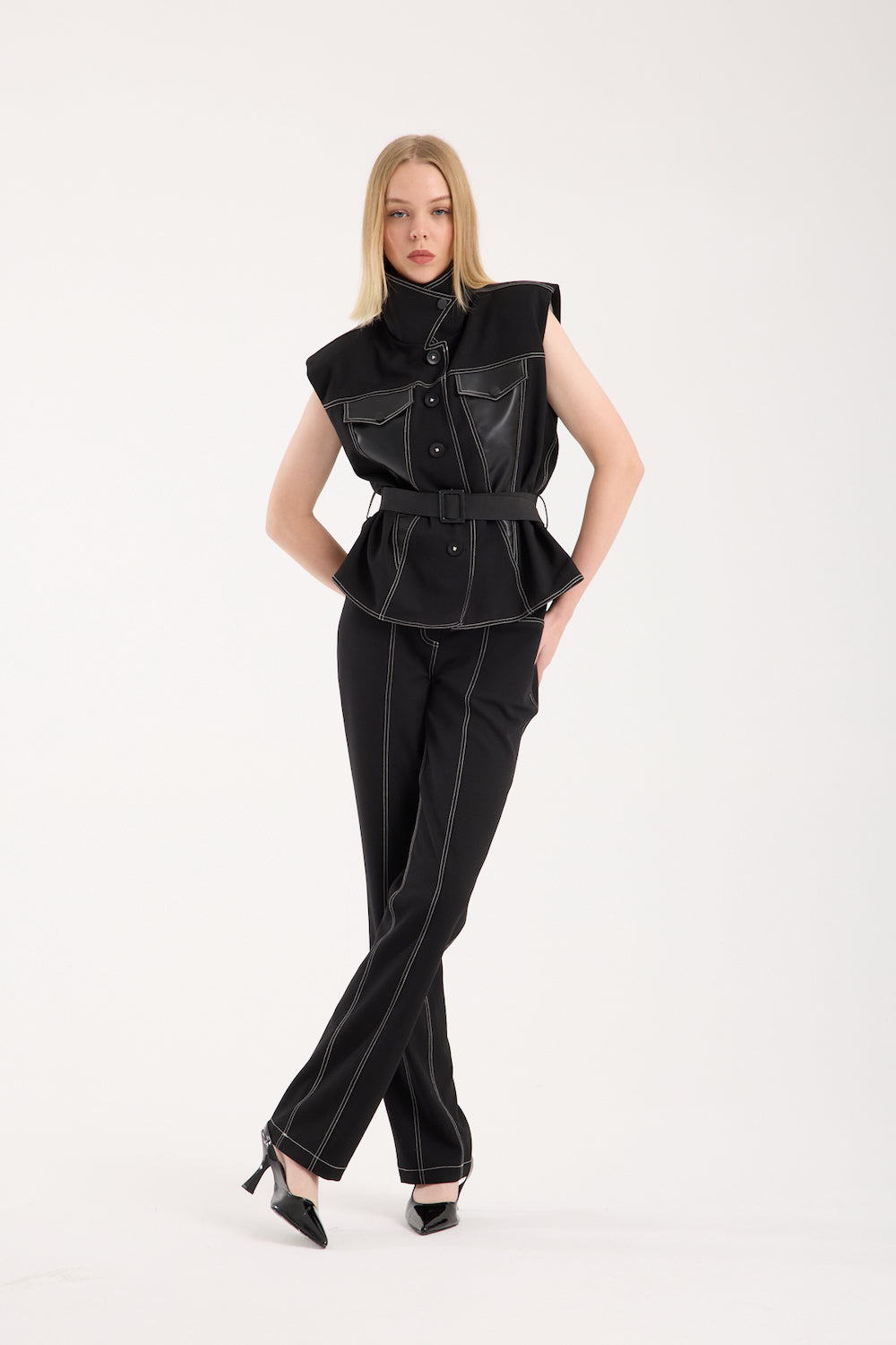 Obsidian Siyah Kontrast Ddikişli Şık Pantolon - Modern Fit