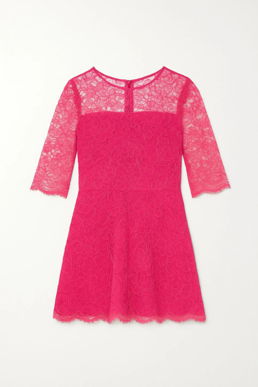 Kısa Kollu & Astarlı Fuşya Kordoneli Dantel Kısa Elbise