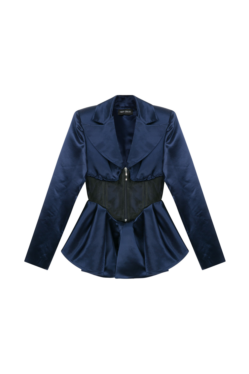 Ceket bel kısmı transparan grek tül korse detaylıdır