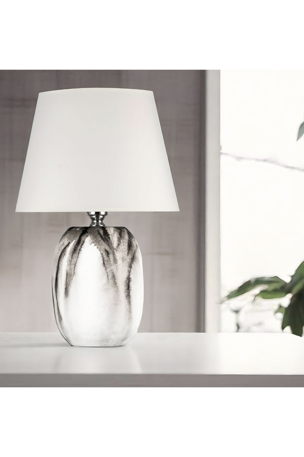 Beyaz/siyah Batik Desen Adrien Seramik Abajur - Krem Başlık