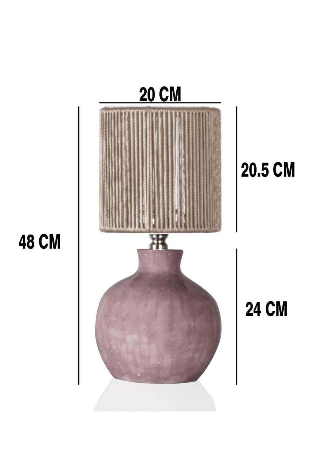 Candy Pembe Renk Seramik Abajur Kordon Başlıklı