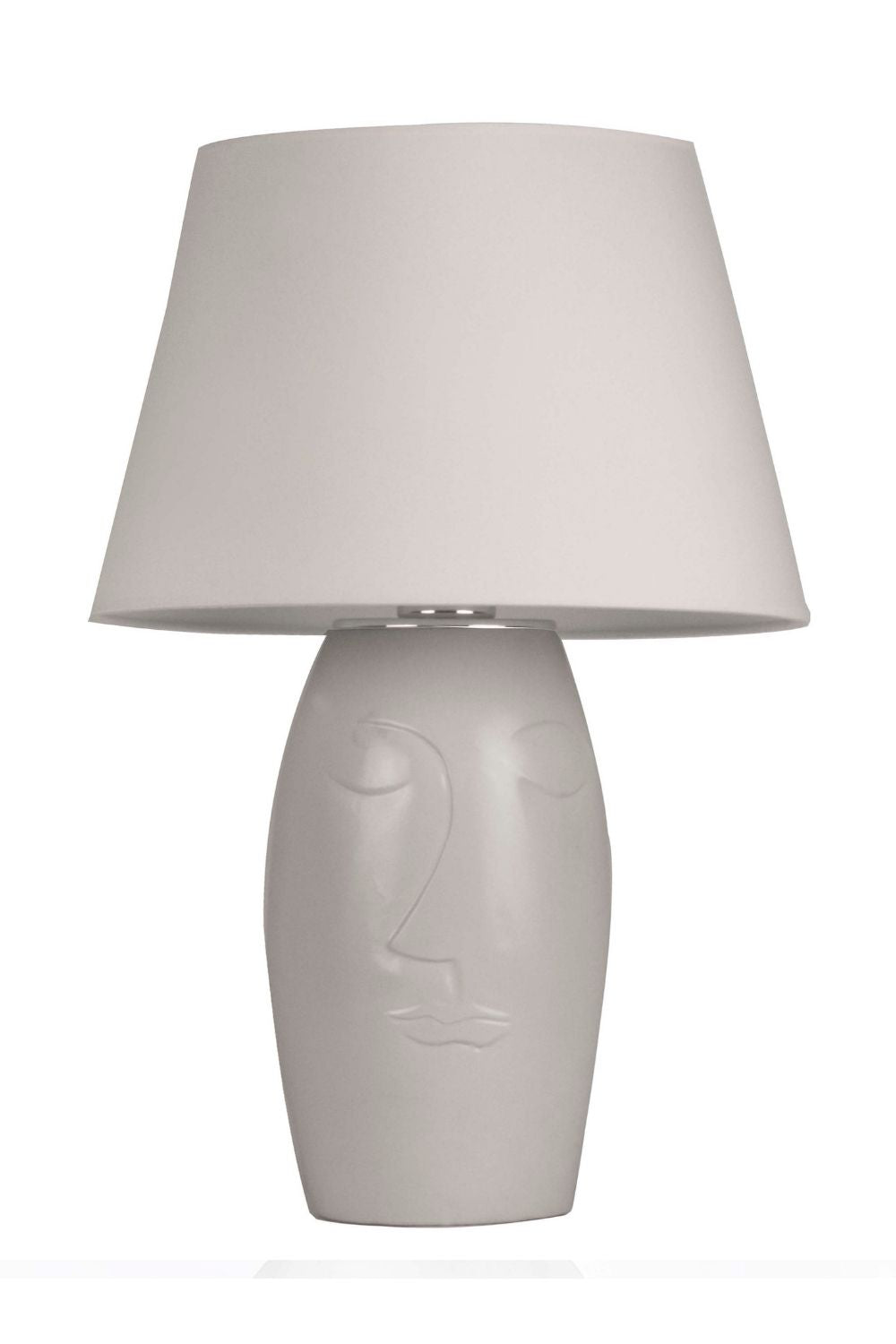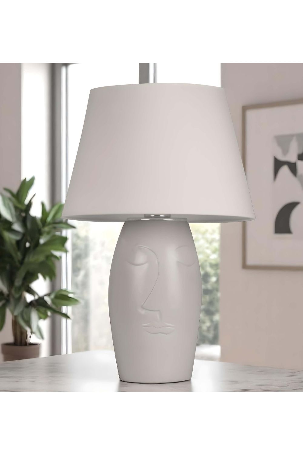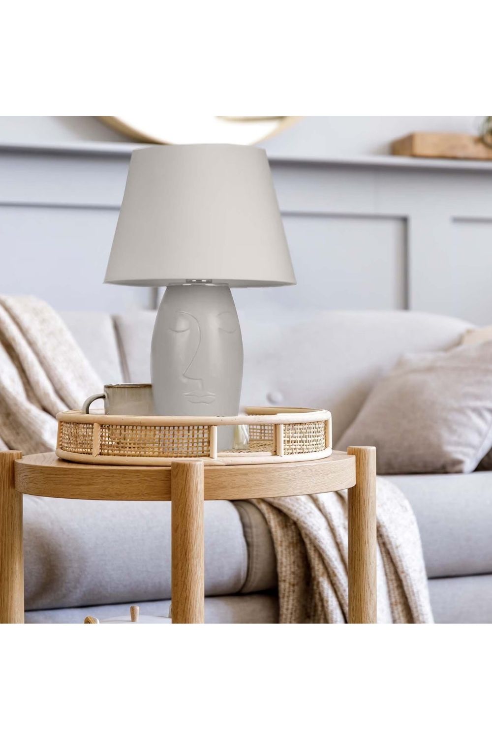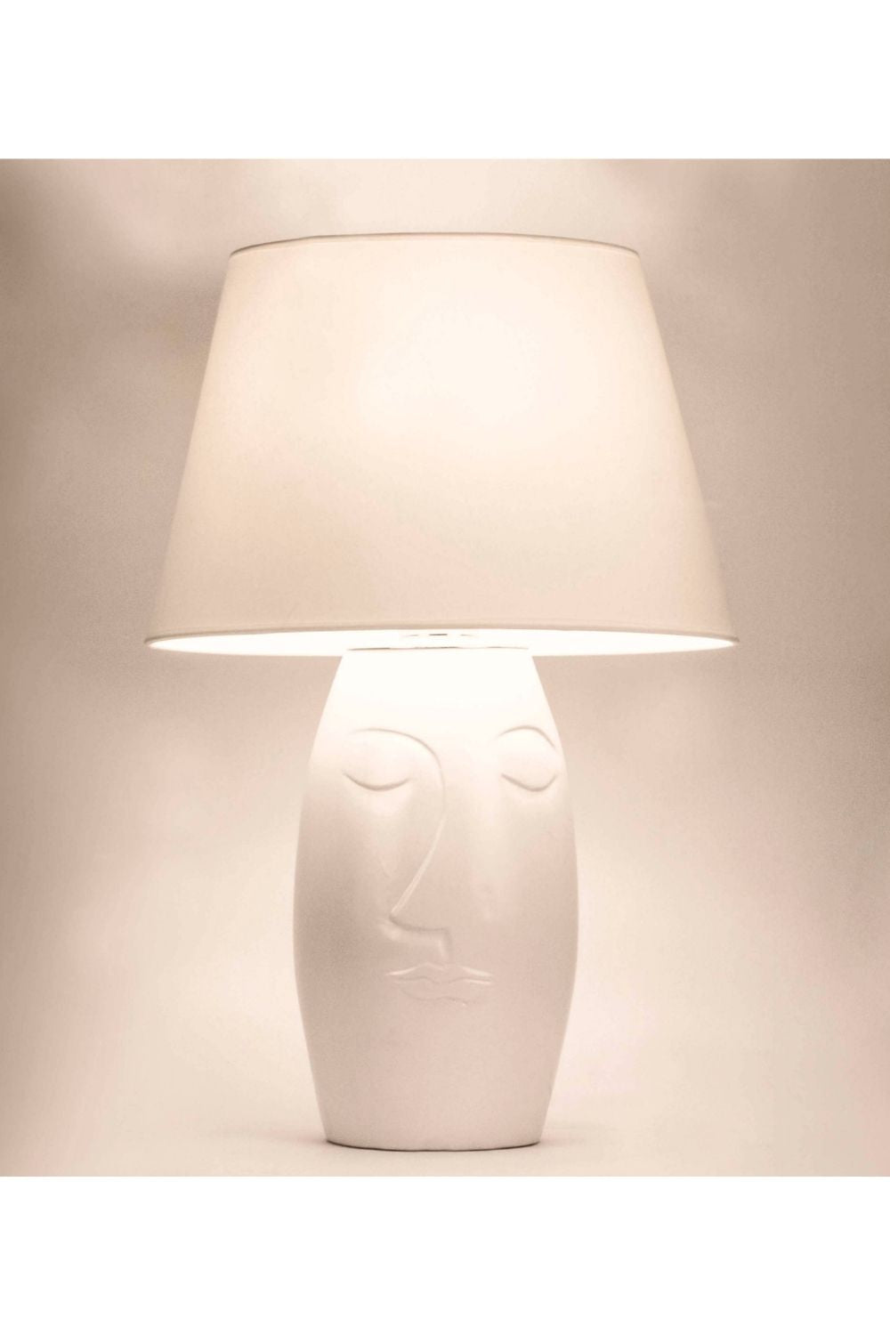 El Yapımı Modern Barcelona Abajur – Krem Seramik Yüz Formlu, Krem Başlıklı Tasarım