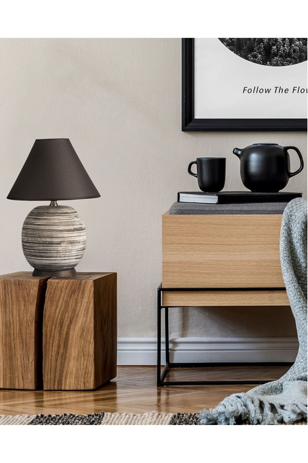 Kahire Serisi Kahve Tonlarında Çizgili Seramik Abajur Kahve Başlık
