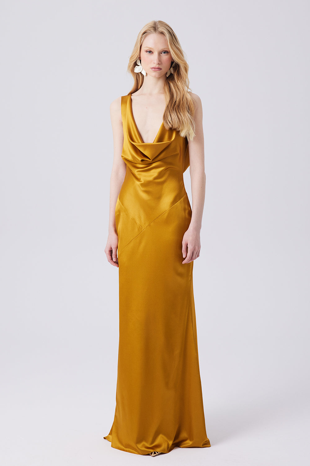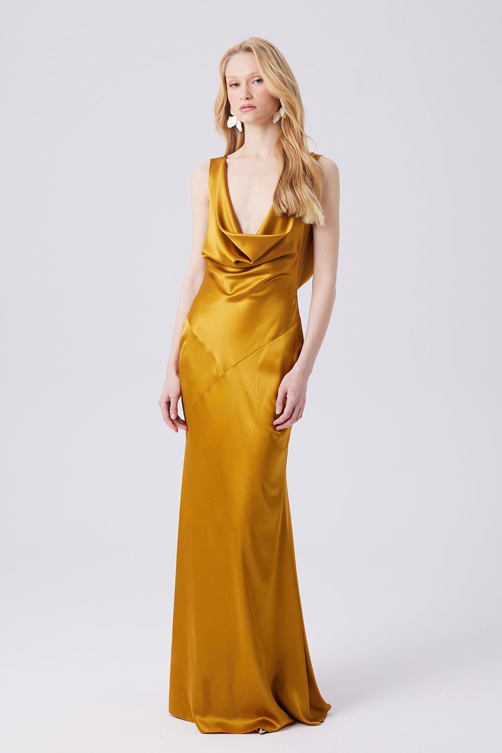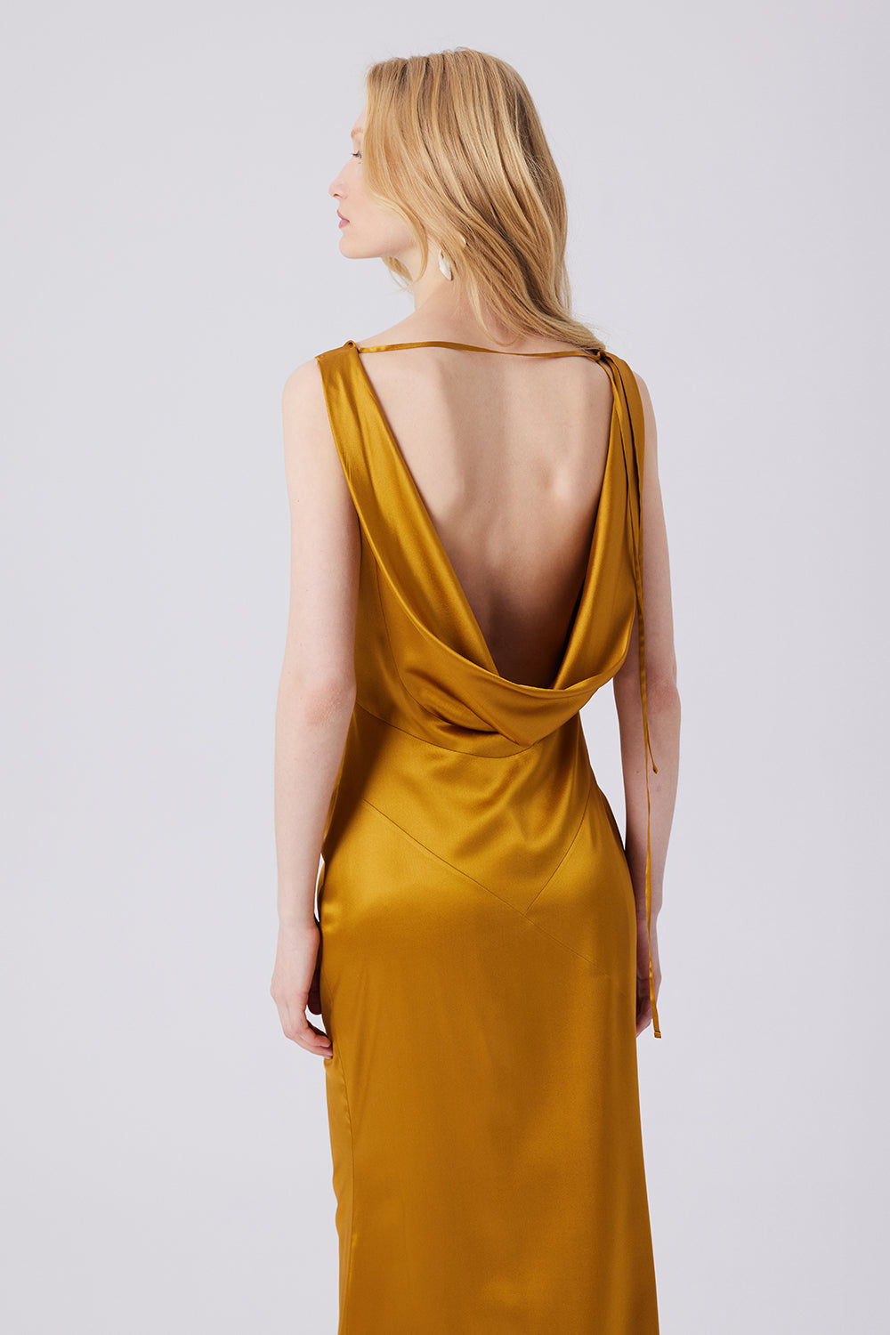 Isabetta Elbise, yumuşak ve akışkan ipek kumaştan özenle tasarlanmıştır. Hafif derinlikteki yaka kesimi zarif bir siluet sunarken, derin sırt dekoltesi sofistike bir dokunuş katar. Asimetrik dikiş detayı ise elbiseye modern ve göz alıcı bir karakter kazandırır.