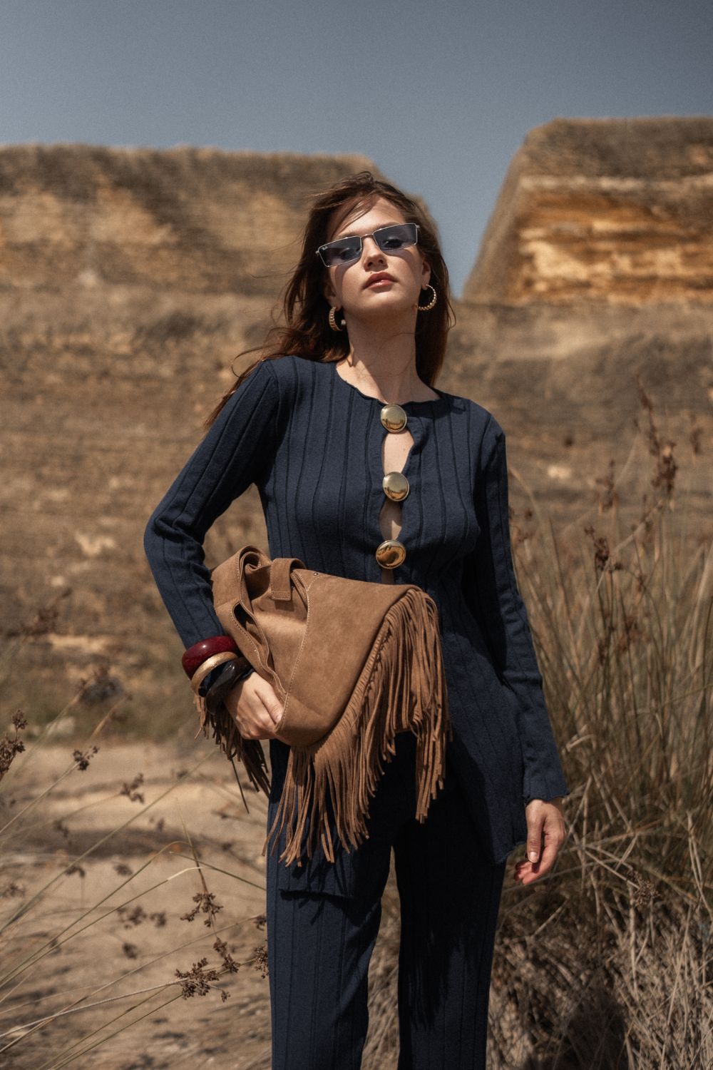 Modelin üzerindeki ürün S bedendir.Model Ölçüleri: 83/60/90 cm Model boyu: 1.71 cm