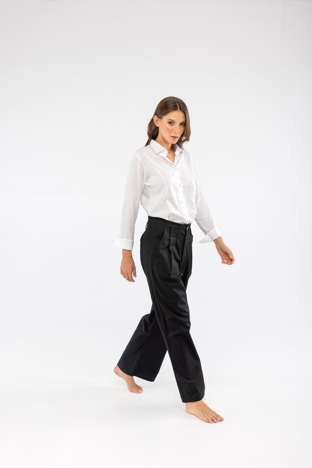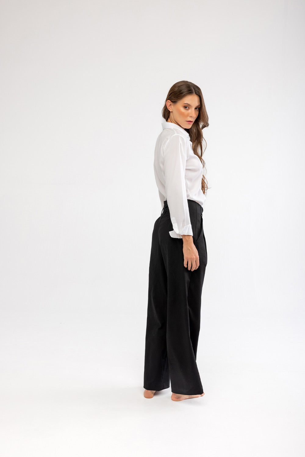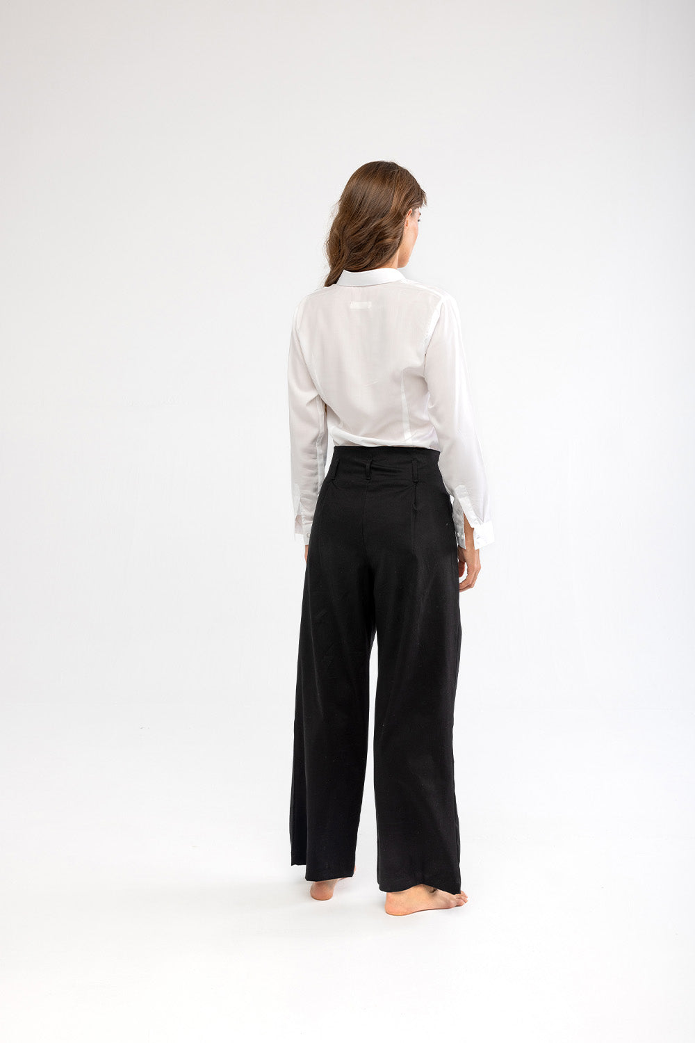 Siyah Geniş Paça Pileli Pamuk Kadın Palazzo Pantolon