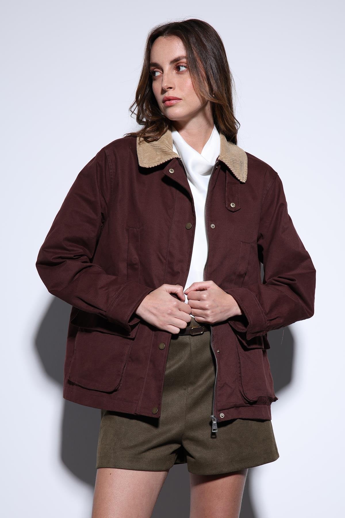 Bordo Kontrast Yaka Kadın Ceket