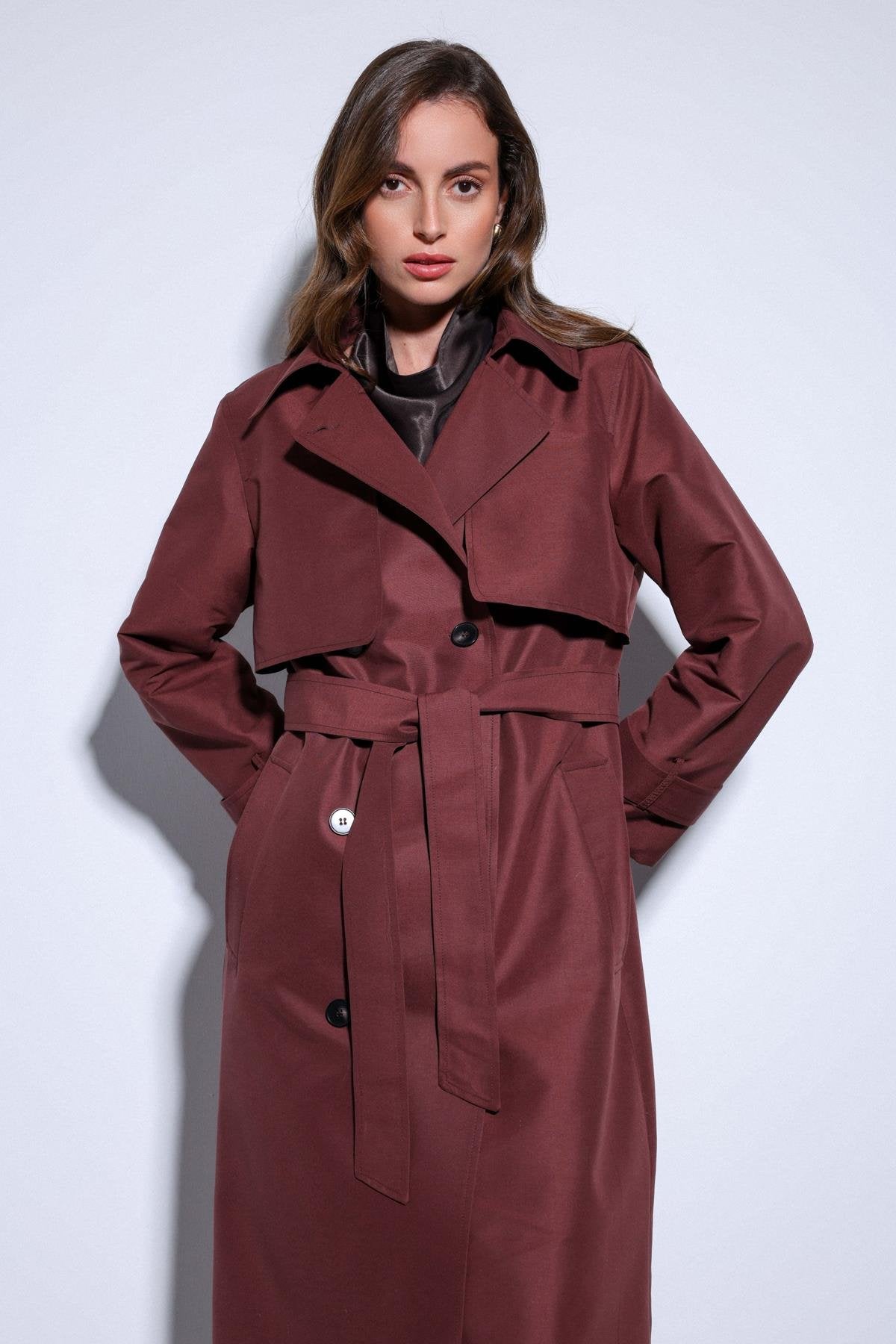 Bordo Kruvaze Kemerli Kadın Trençkot