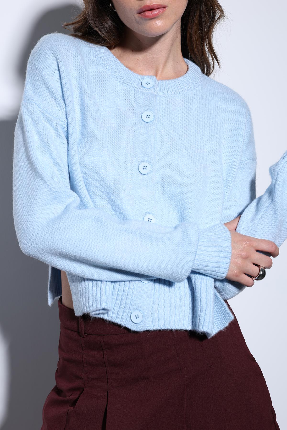 Mavi Yırtmaçlı Örgü Triko Kadın Kazak