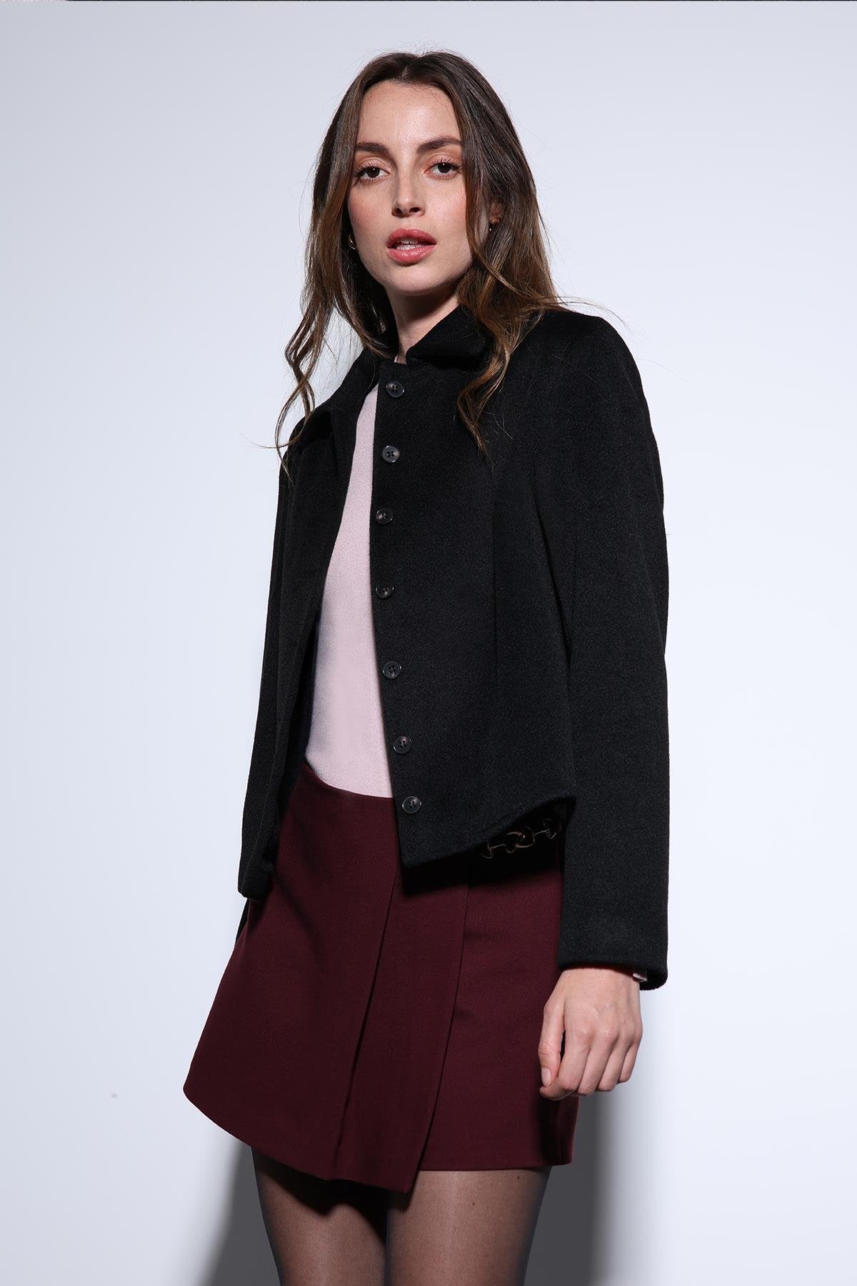 Siyah Gömlek Yaka Kısa Kaşe Ceket