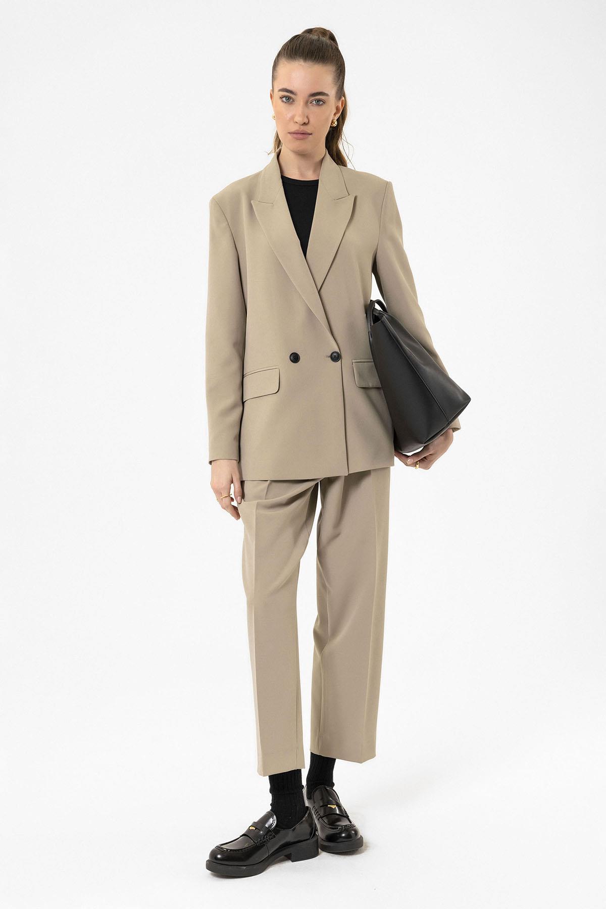 Bej Kadın Yüksek Bel Straight Fit Kısa Pantolon