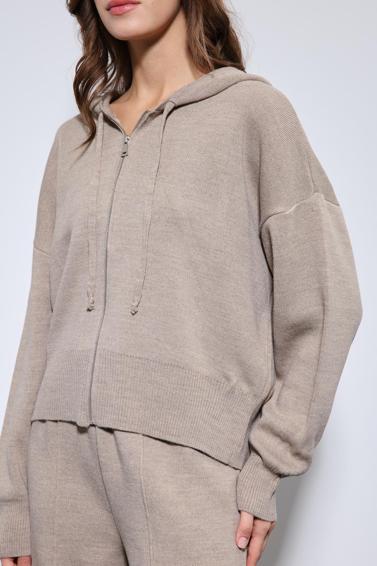 Bej Kapüşonlu Üst Ve Geniş Paça Triko Takım