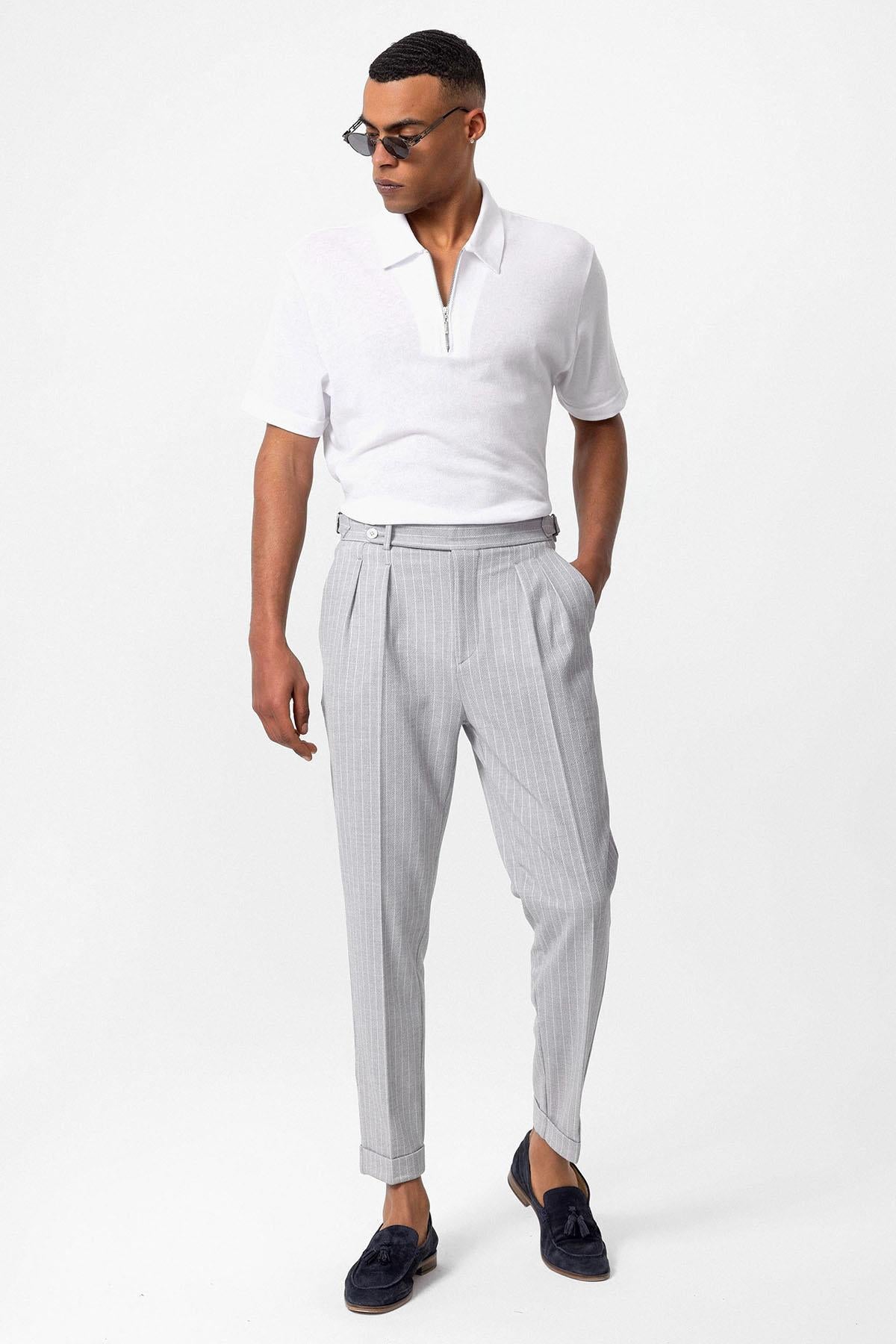 Beyaz Polo Yaka Fermuarlı Erkek T Shirt