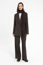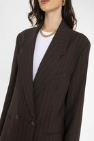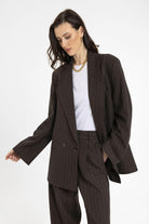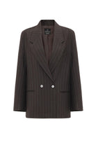 Kahve Kadın Çizgili Oversize Blazer Ceket