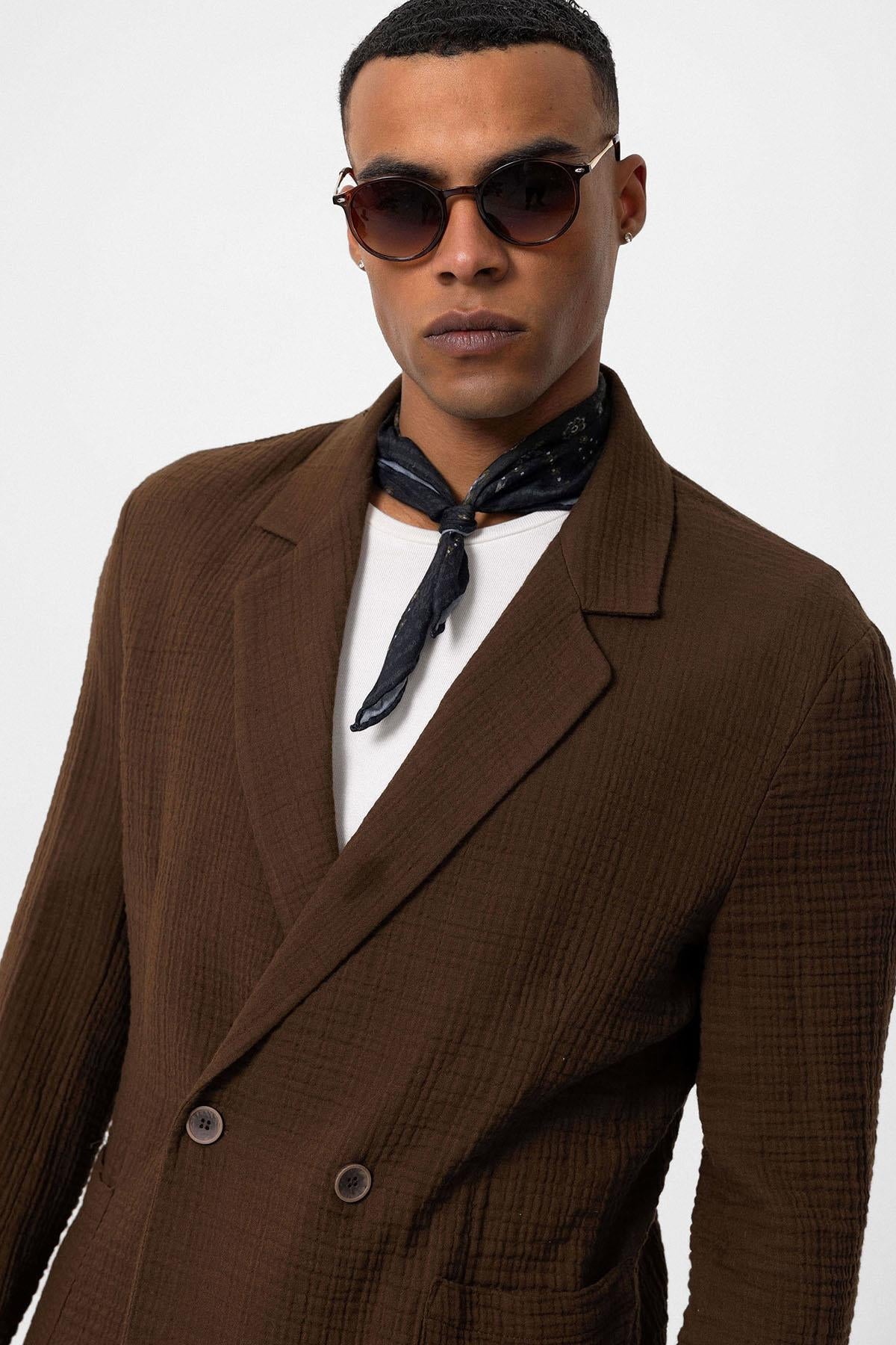 Kahve Kruvaze Kapama Astarsız Erkek Blazer Ceket
