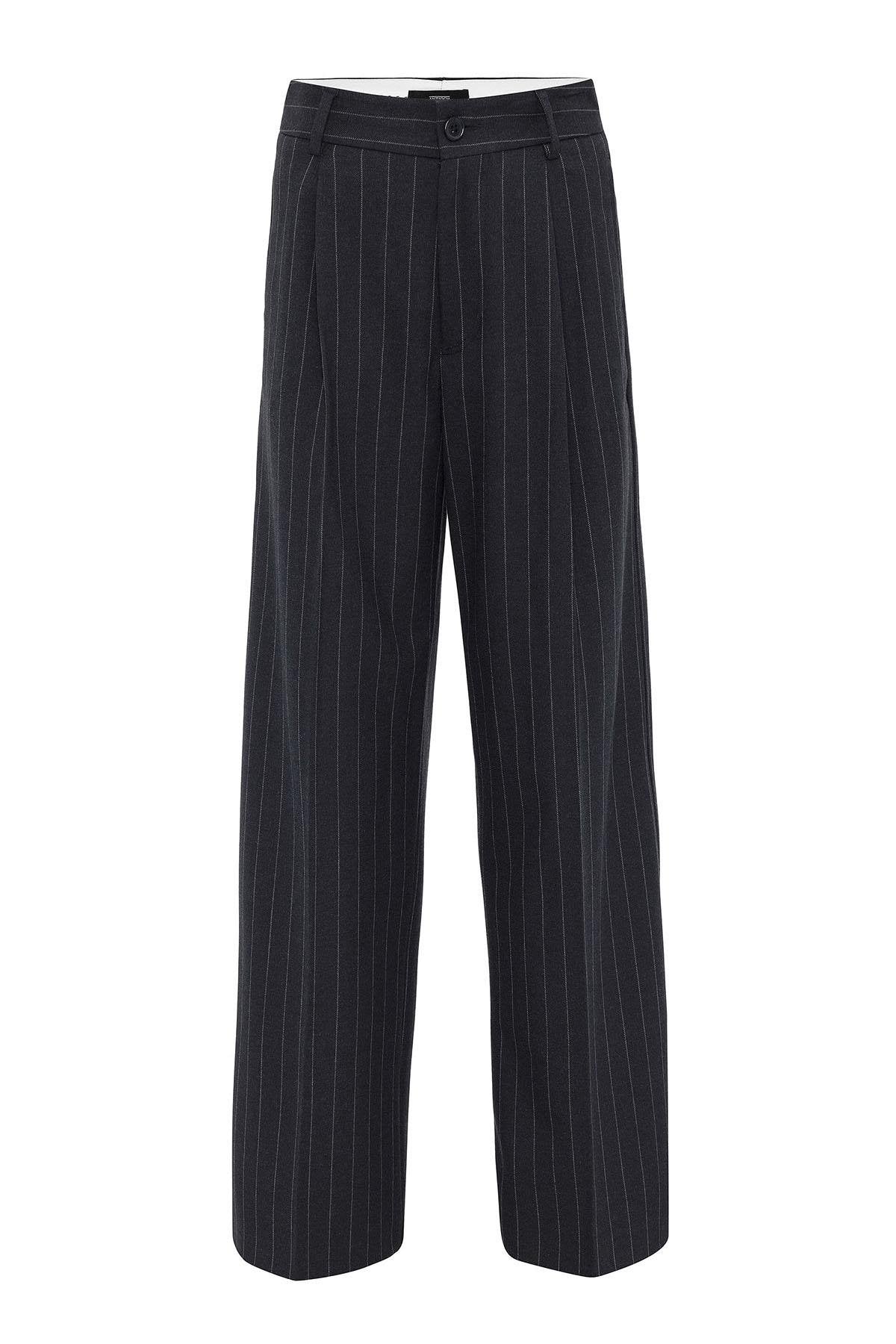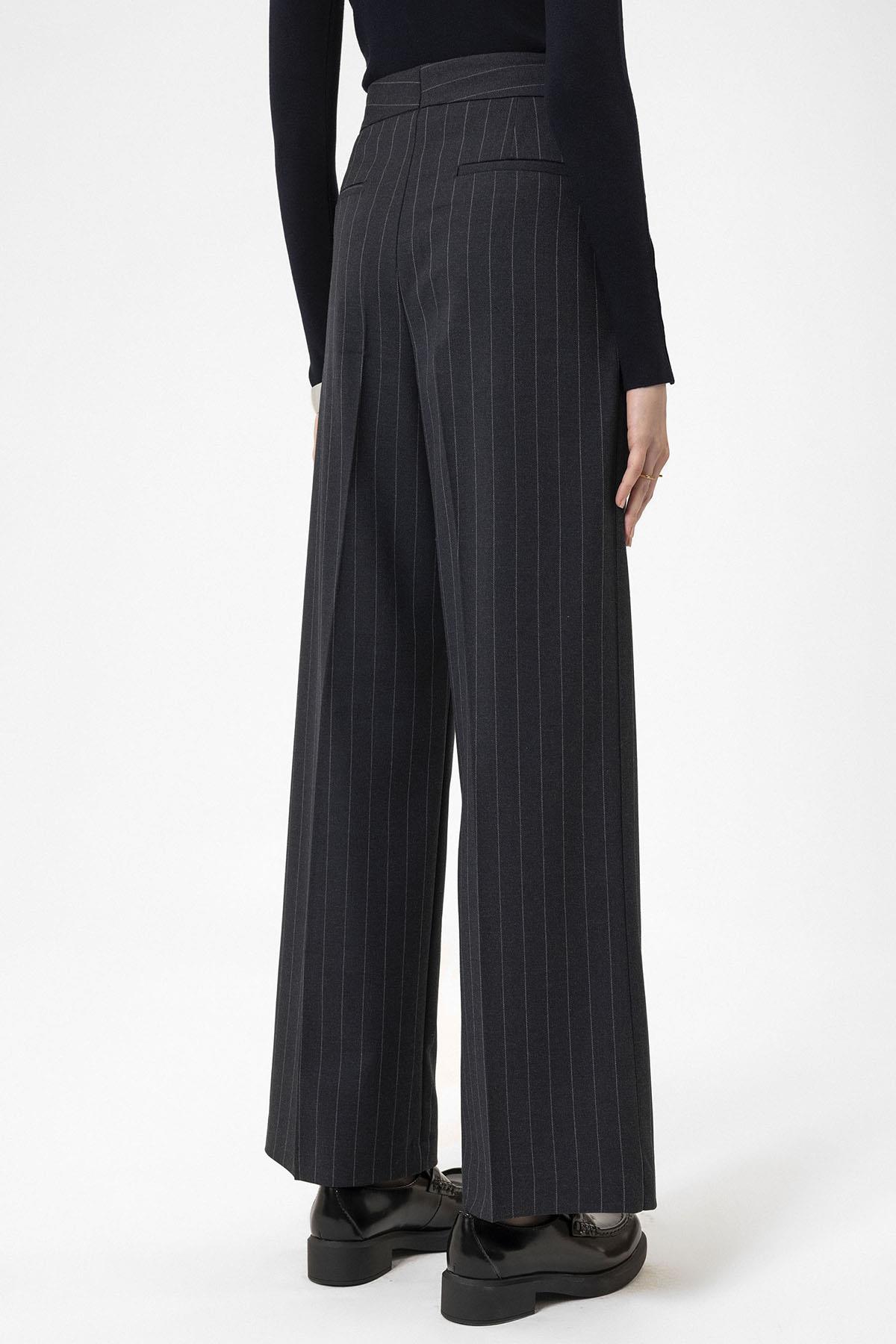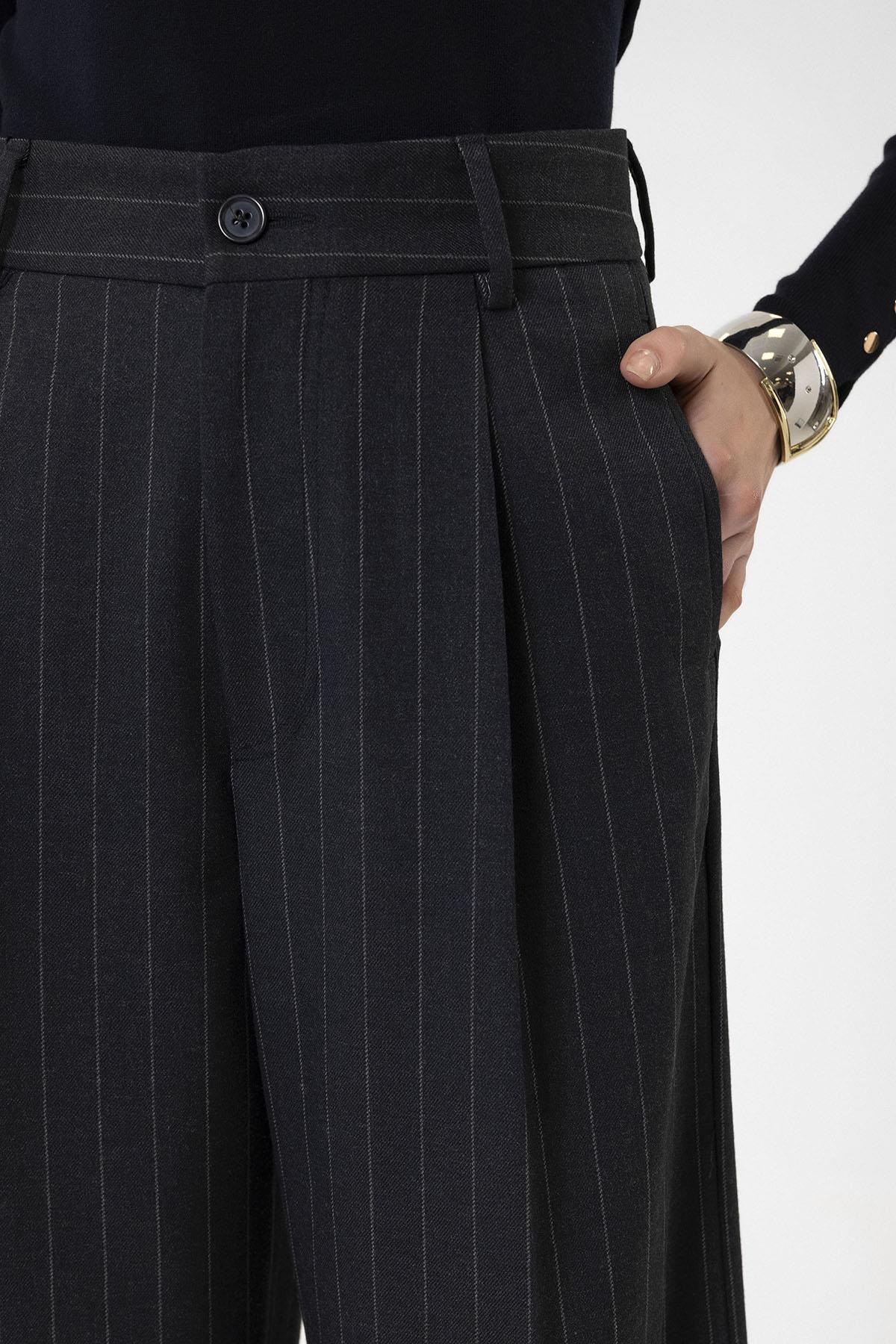 Lacivert Kadın Yüksek Bel Pileli Çizgili Pantolon