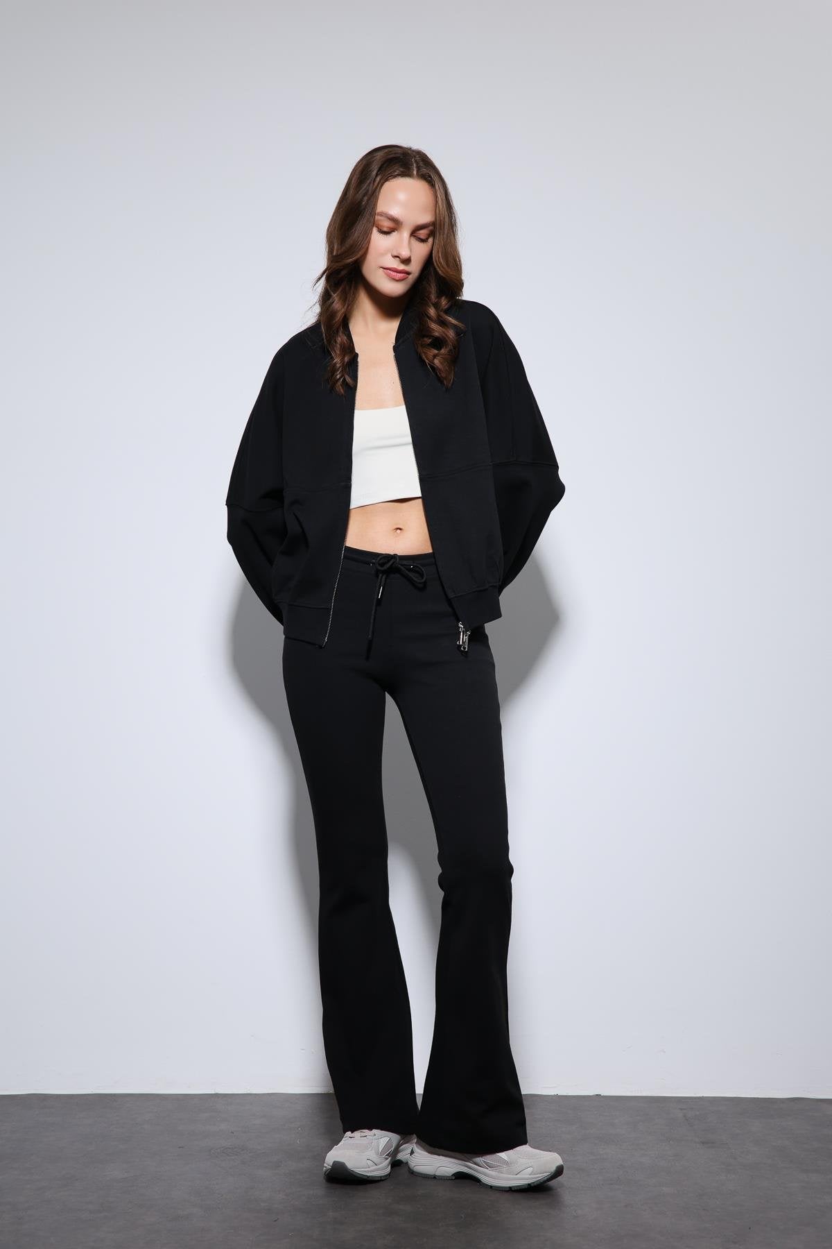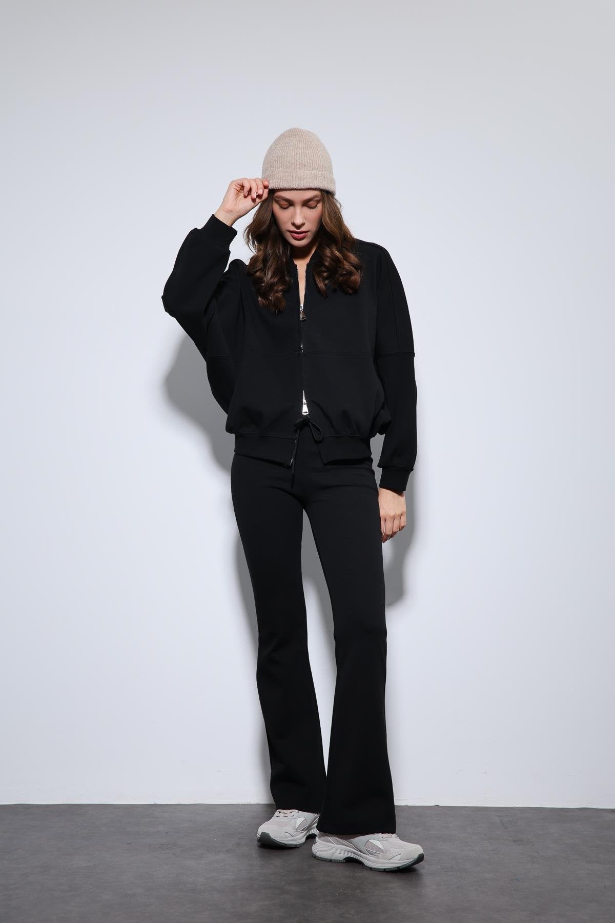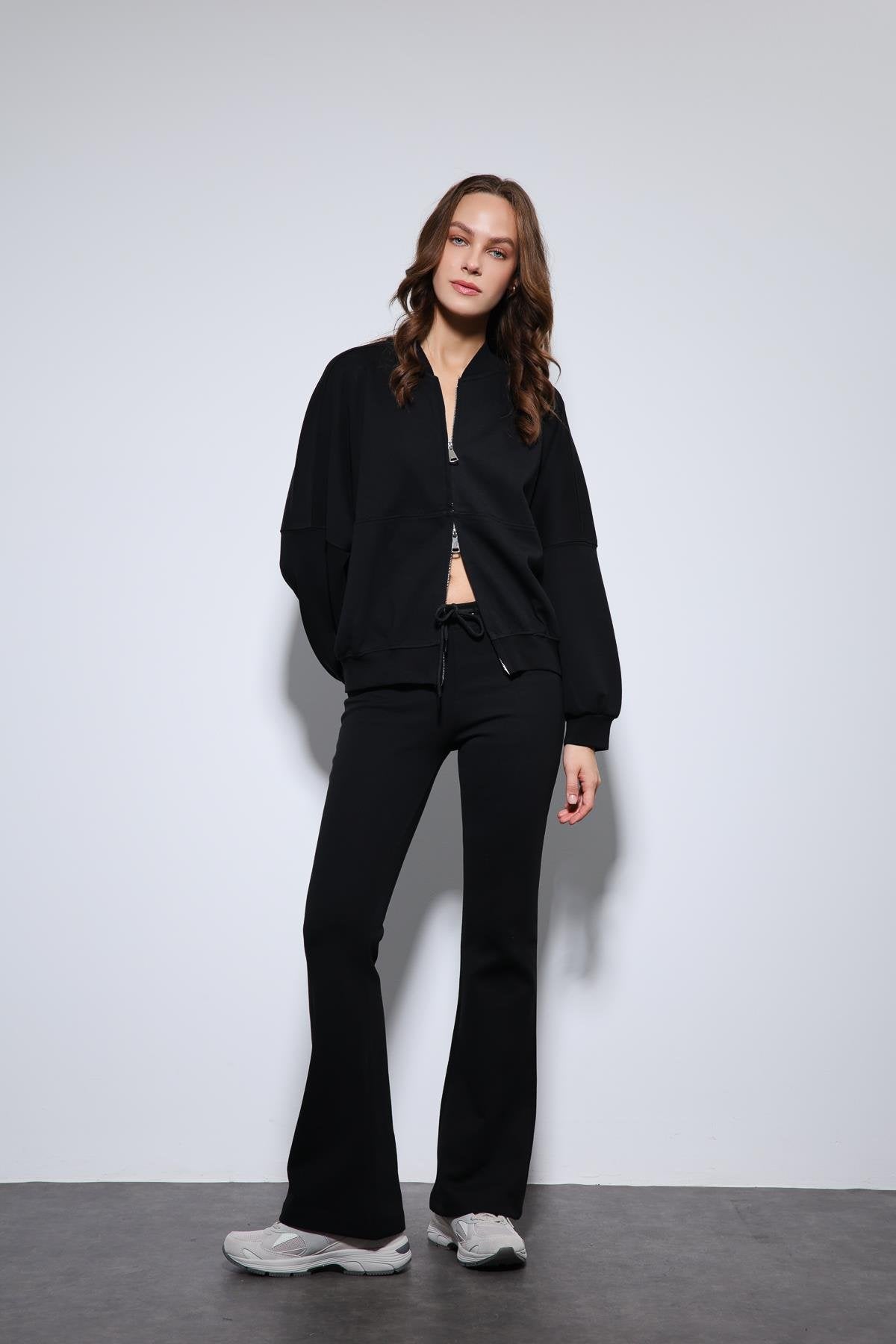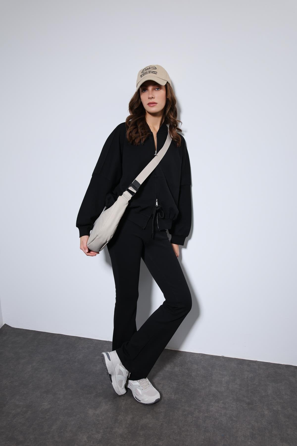 Siyah Bomber Ceket Ve İspanyol Paça Eşofman Takım