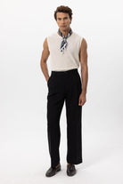 Siyah Keten Karışımlı Baggy Erkek Pantolon