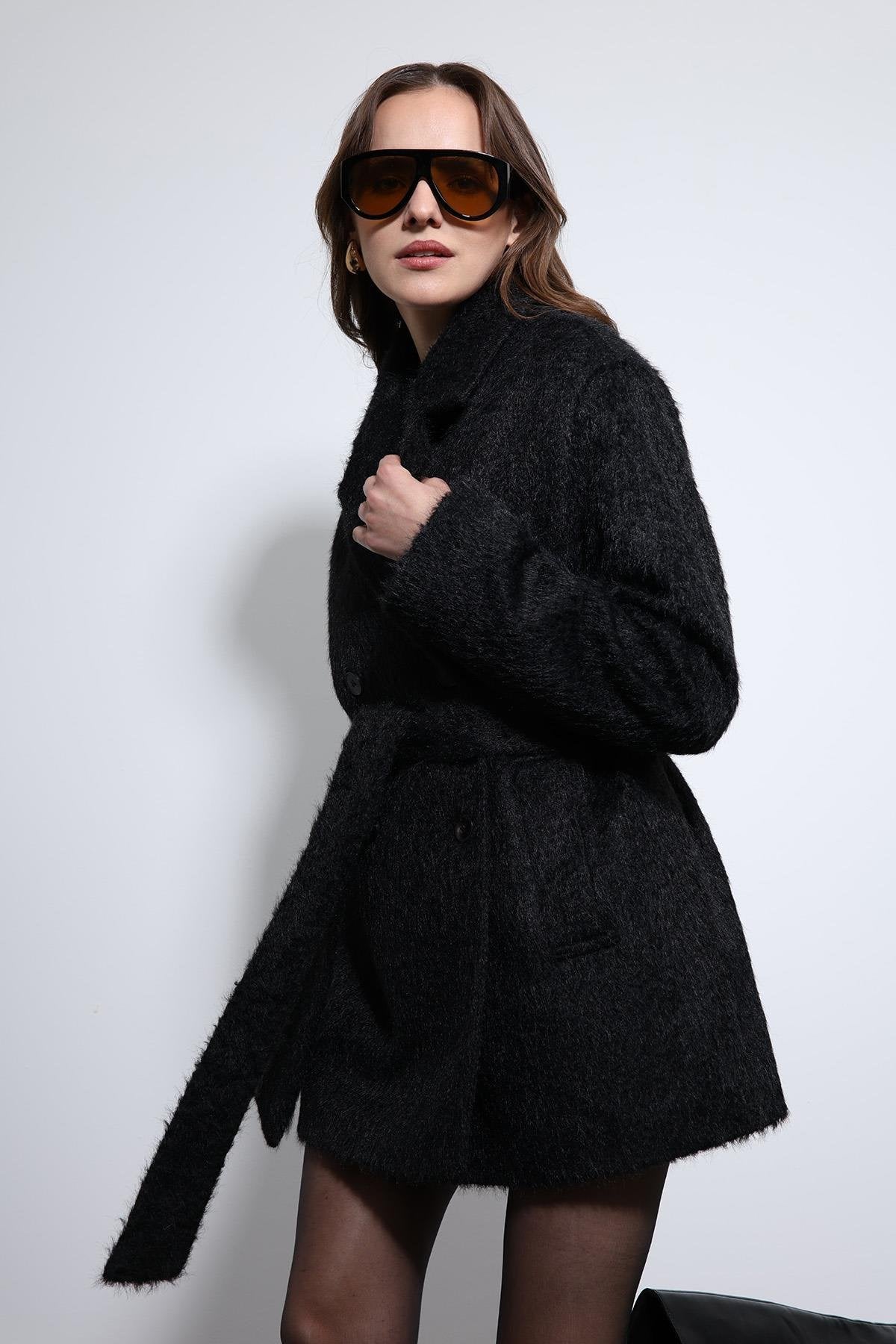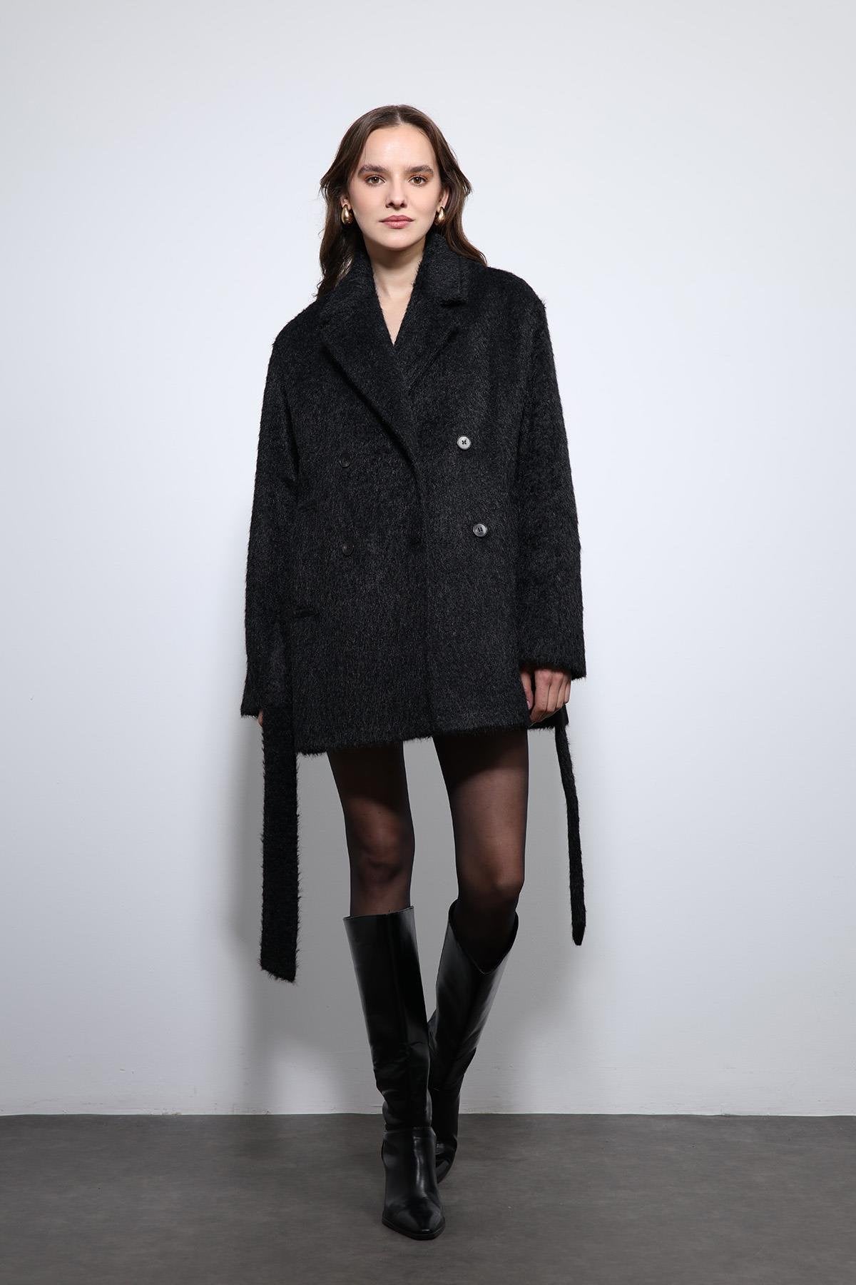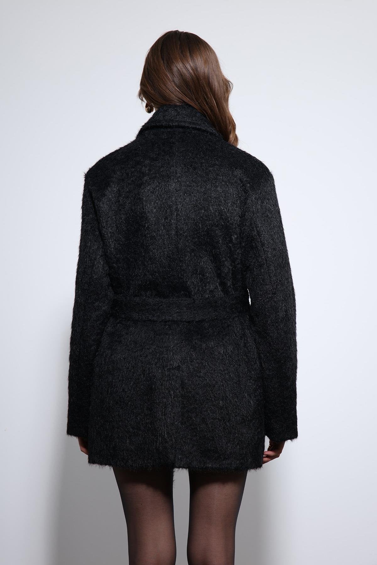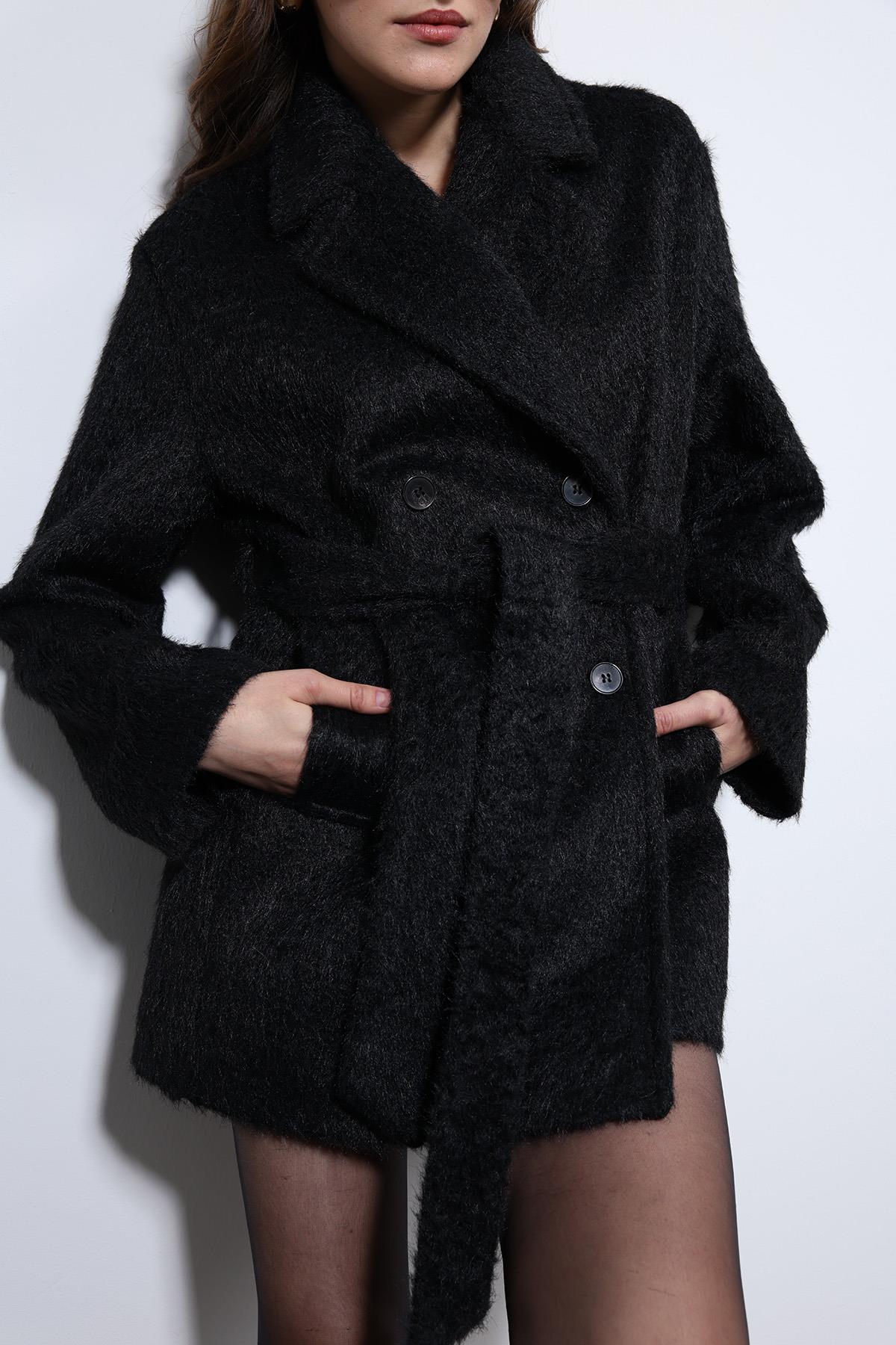 Siyah Kısa Suni Kürklü Kaban