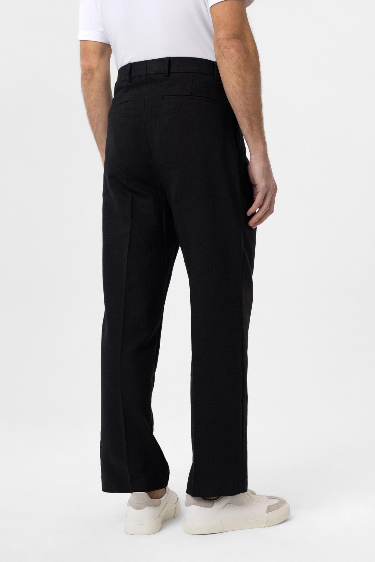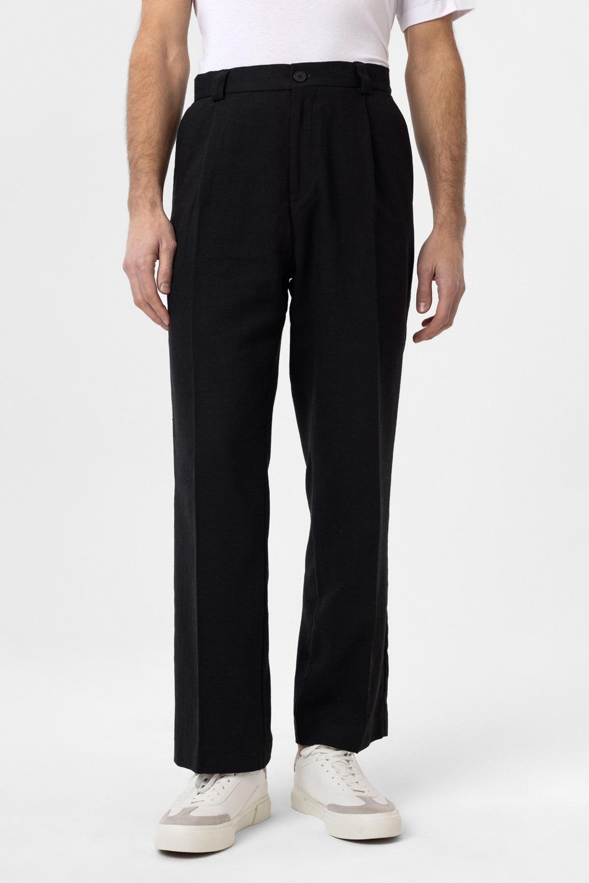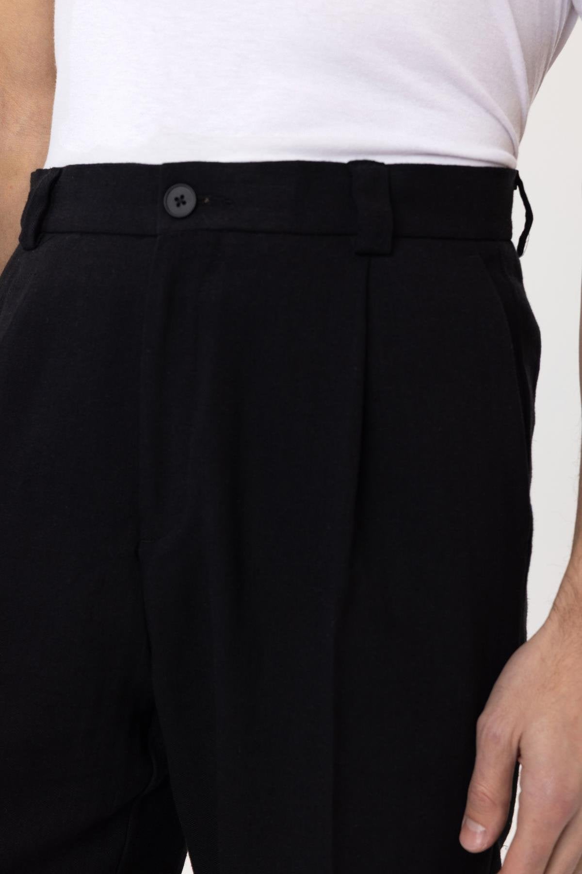 Siyah Yüksek Bel Keten Karışımlı Erkek Pantolon
