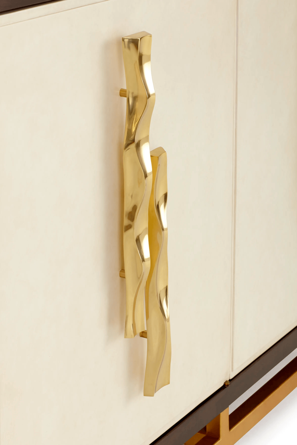 Marquessa Konsol, tamamen el işçiliğiyle üretilmiş, meşe ağacının doğal dokusunun zarif bir şekilde işlendiği göz alıcı bir tasarımdır. Üç kapaklı yapısı ve altı rafı ile mükemmel bir depolama çözümü sunarken, aynı zamanda odalarınıza sofistike bir dokunuş katar. Pirinç kulplar ve varaklı altın kaplama ayaklar, parça boyunca zarif bir şıklık yaratır ve Marquessa’yı sadece bir mobilya değil, aynı zamanda bir sanat eseri haline getirir. Hem işlevsel hem de estetik olan bu konsol, her türlü iç mekâna modern bir hava katarak, kullanım kolaylığı ve zarafeti mükemmel bir şekilde dengeler.