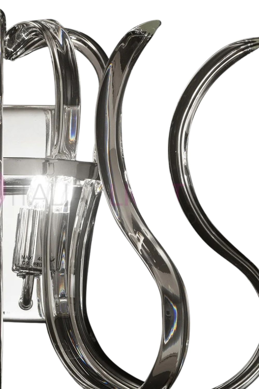 Ürün Özellikleri:  Malzeme ve Gövde:  Krom Kaplamalı Metal Gövde/Kristal Cam Ölçü:  L:36 cm H:23 cm  Tasarımcı:  Metallux Renk: Krom/Kristal Işık: G9 2X40W