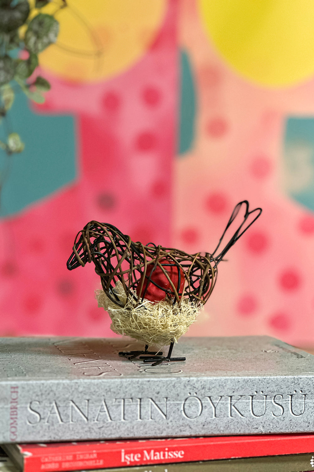 Tamamen el yapımı özgün bir eseridir. Sanat eseri olduğu için imzalı bir orijinallik sertifikası ile gönderilecektir. Kuş demir ve doğal dallardan yapılmış, içerisindeki parça beton kullanılarak üretilmiştir. Ev ya da ofis dekorasyonu amacı ile de kullanılabilir.