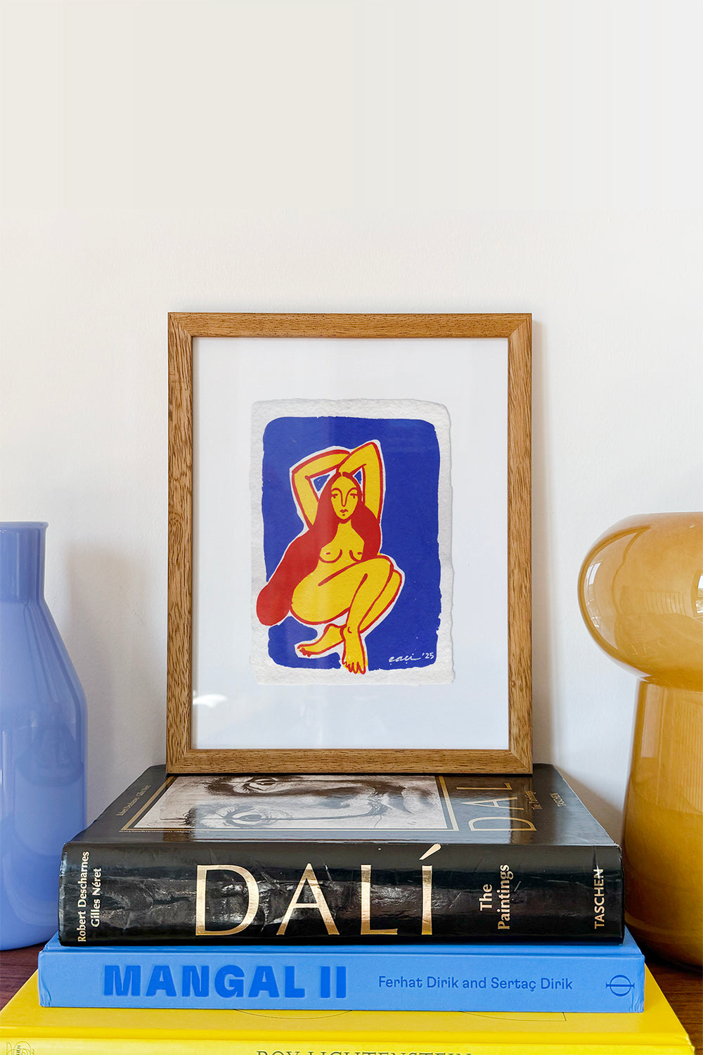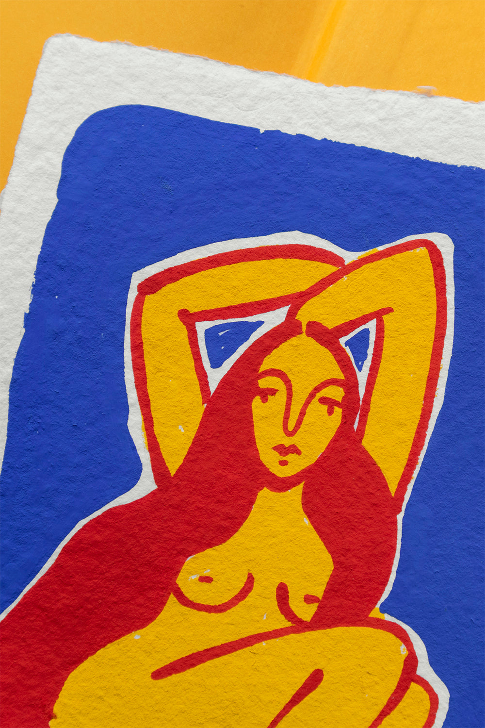 Bu resim kendi ürettiğimiz geri dönüştürülmüş el yapımı kağıt üzerine yapılmıştır. Sürdürülebilir yaratıcılığa olan bağlılığımızı yansıtan çevre dostu bir sanat eseridir.