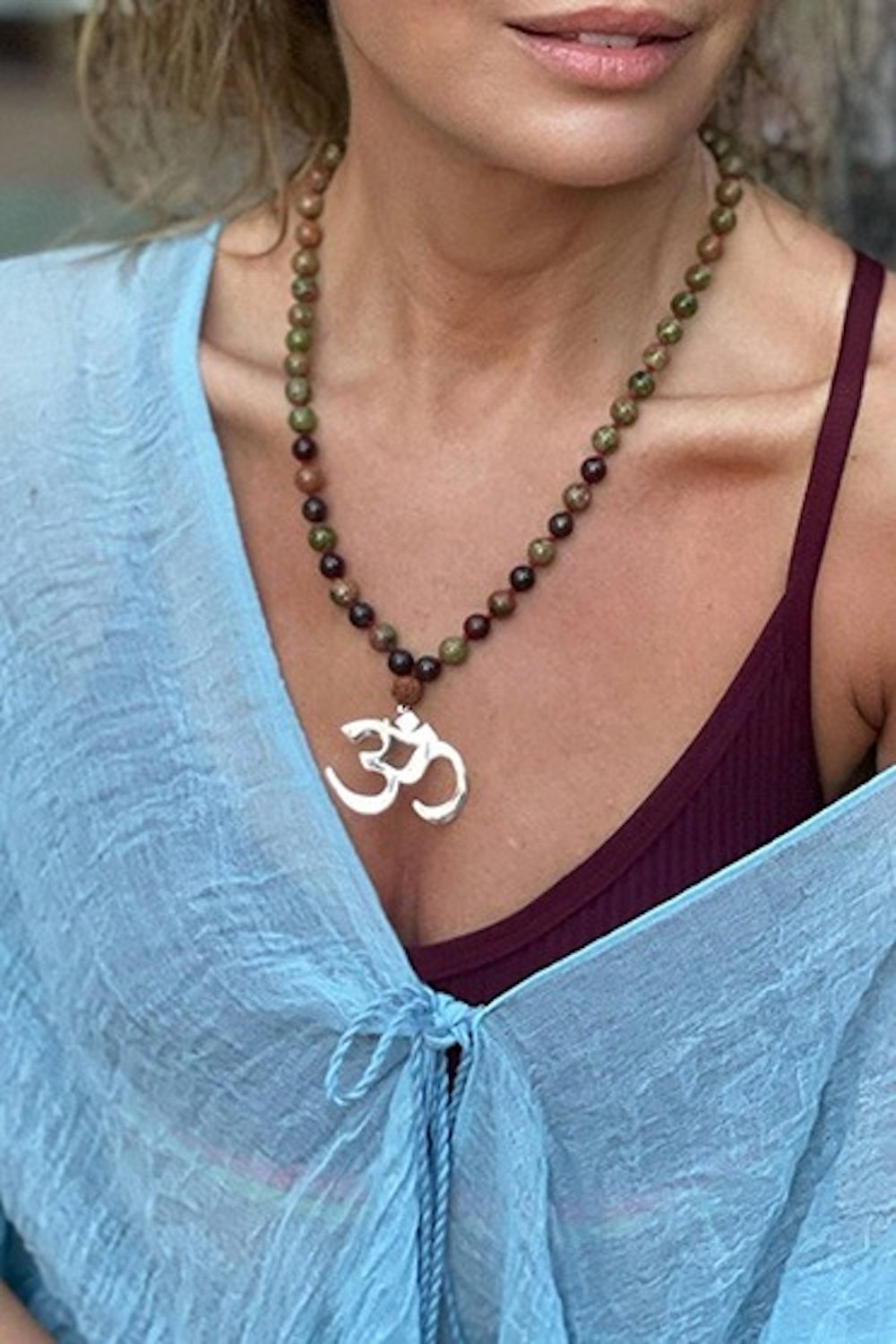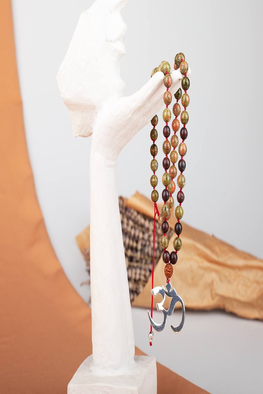 54 adet 8mm orijinal unakite ve Daragon Jasper taşı kullanılmıştır.