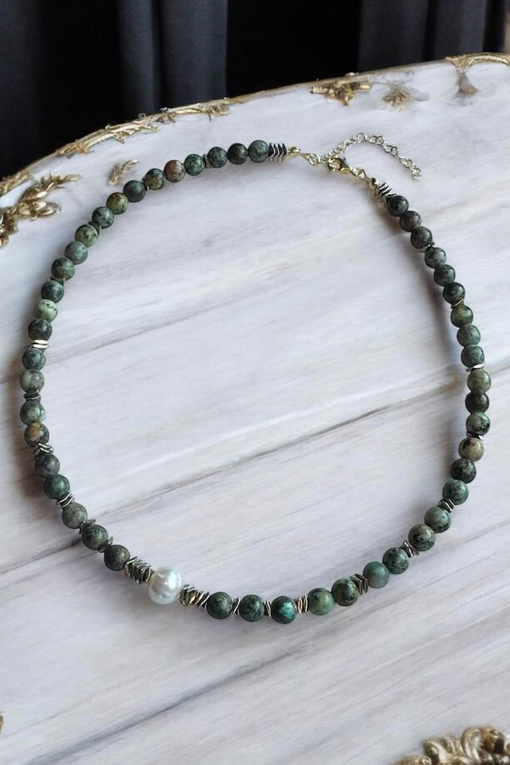 Nazara karşı çok etkili olan Afrika Turkuazı, konsantrasyon ve odaklanmada size destek olacak Hematit taşı, incinin zarafeti ile Diana kolye size kendinizi iyi hissettirecek.