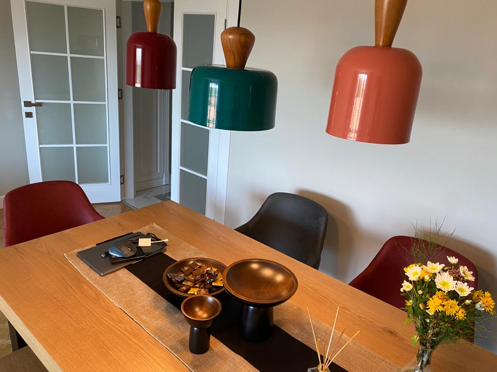 Atolye'nin Rainbow serisi 3 farklı boyda ve onlarca farklı renkte üretilen metal ile ahşap materyalin buluştuğu tekli sarkıtlar serisidir.