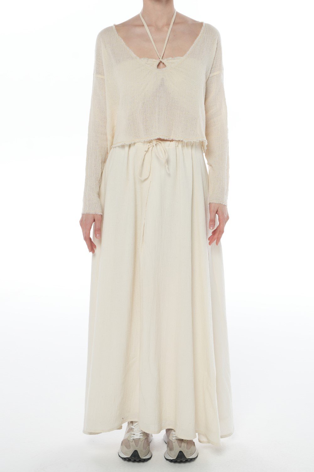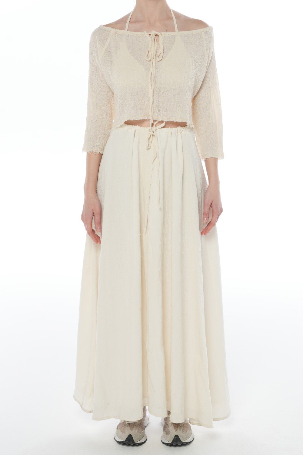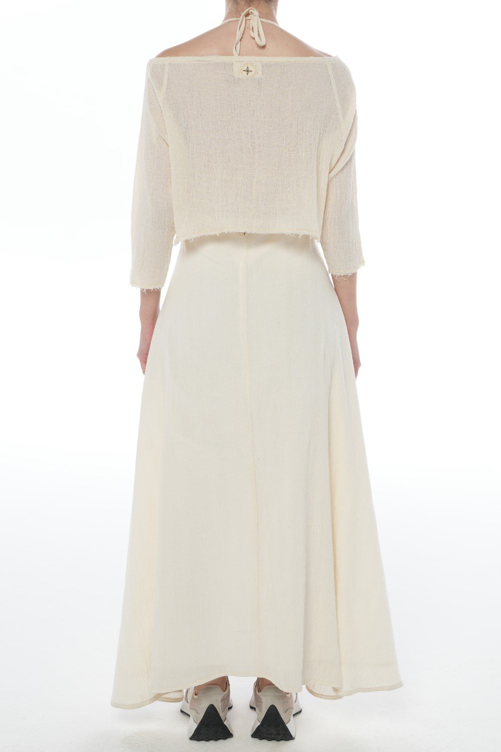 Yumuşak dokulu astarlı %100 pamuk bağcıklı uzun çan etek
