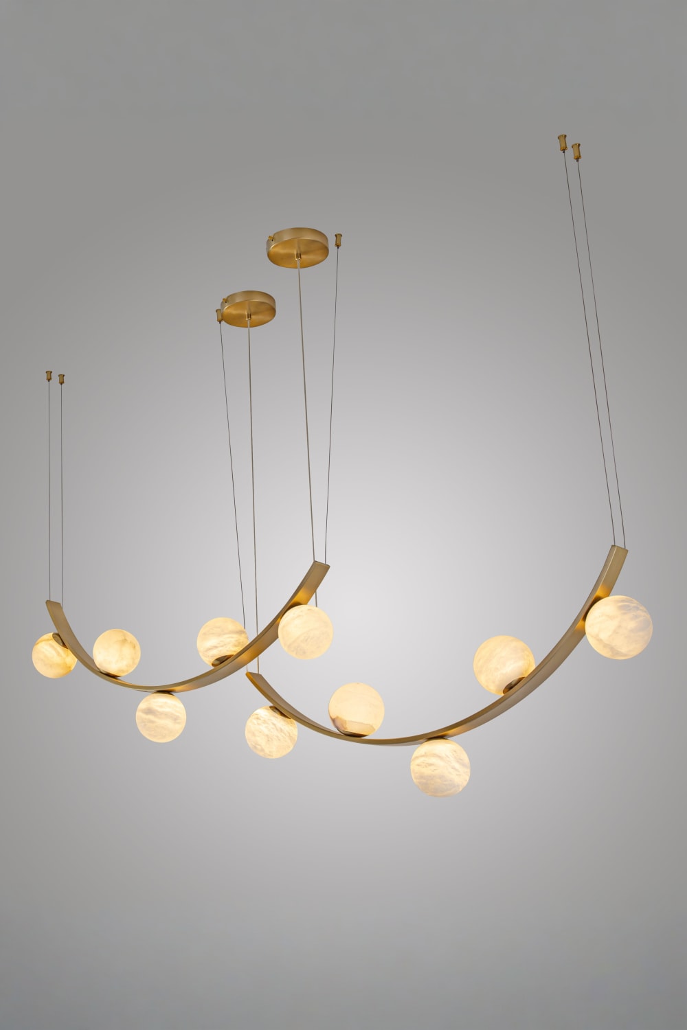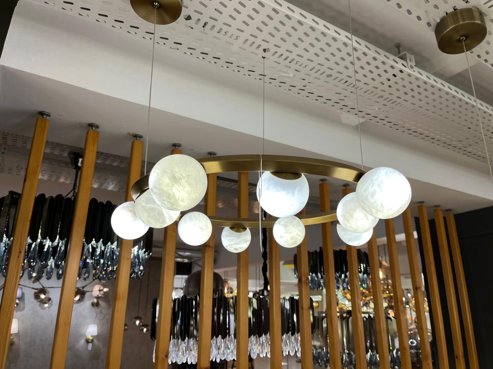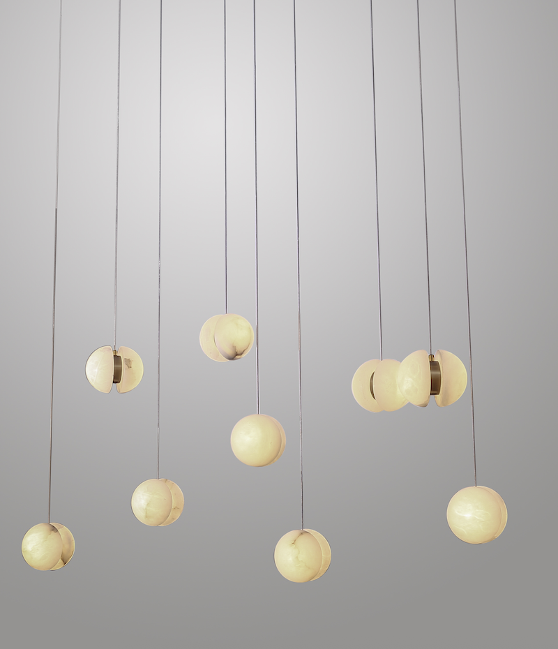Fredy Mermer Avize, Modern avize ailesinin mermer modellerindedir. Üç tipte satışa sunulan ürün 50 cm yuvarlak & 80 cm yay şeklinde yatay & tekli çift taraflı top şekline sahip olan aydınlatmalar tek başına 15-20 metrekare kadar alanı aydınlatabilmektedir.