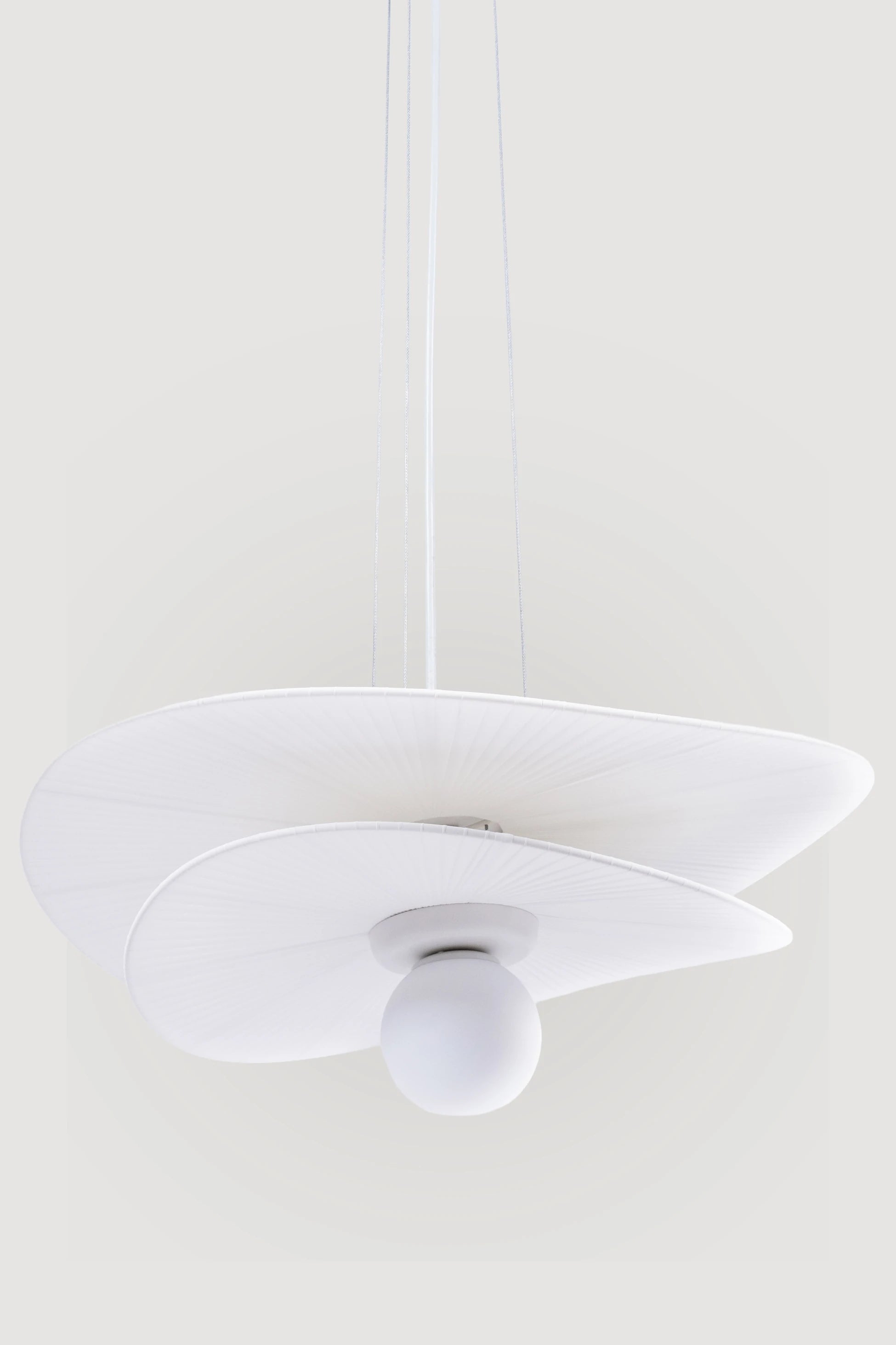 Hareket eden bir kumaşın dalgalarını andıran kıvrımlarıyla, bulunduğu ortamda görsel bir ritim yaratır. Hem modern hem de zamansız çizgisi sayesinde farklı dekorasyon tarzlarına kolayca uyum sağlar. Yaşam alanlarınıza hem şıklık hem de şiirsel bir ışık deneyimi getirmek için tasarlandı.