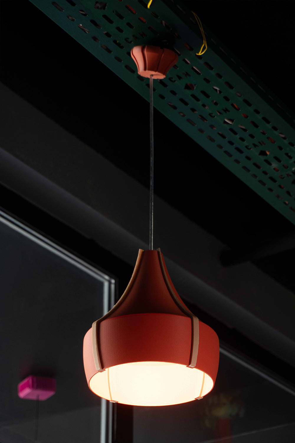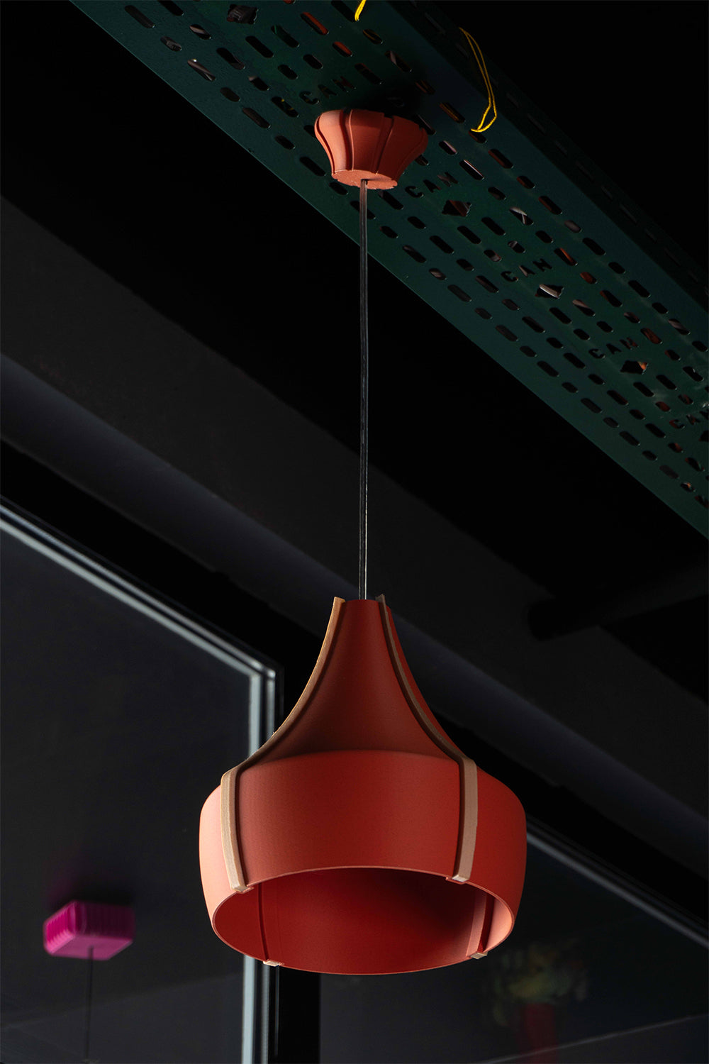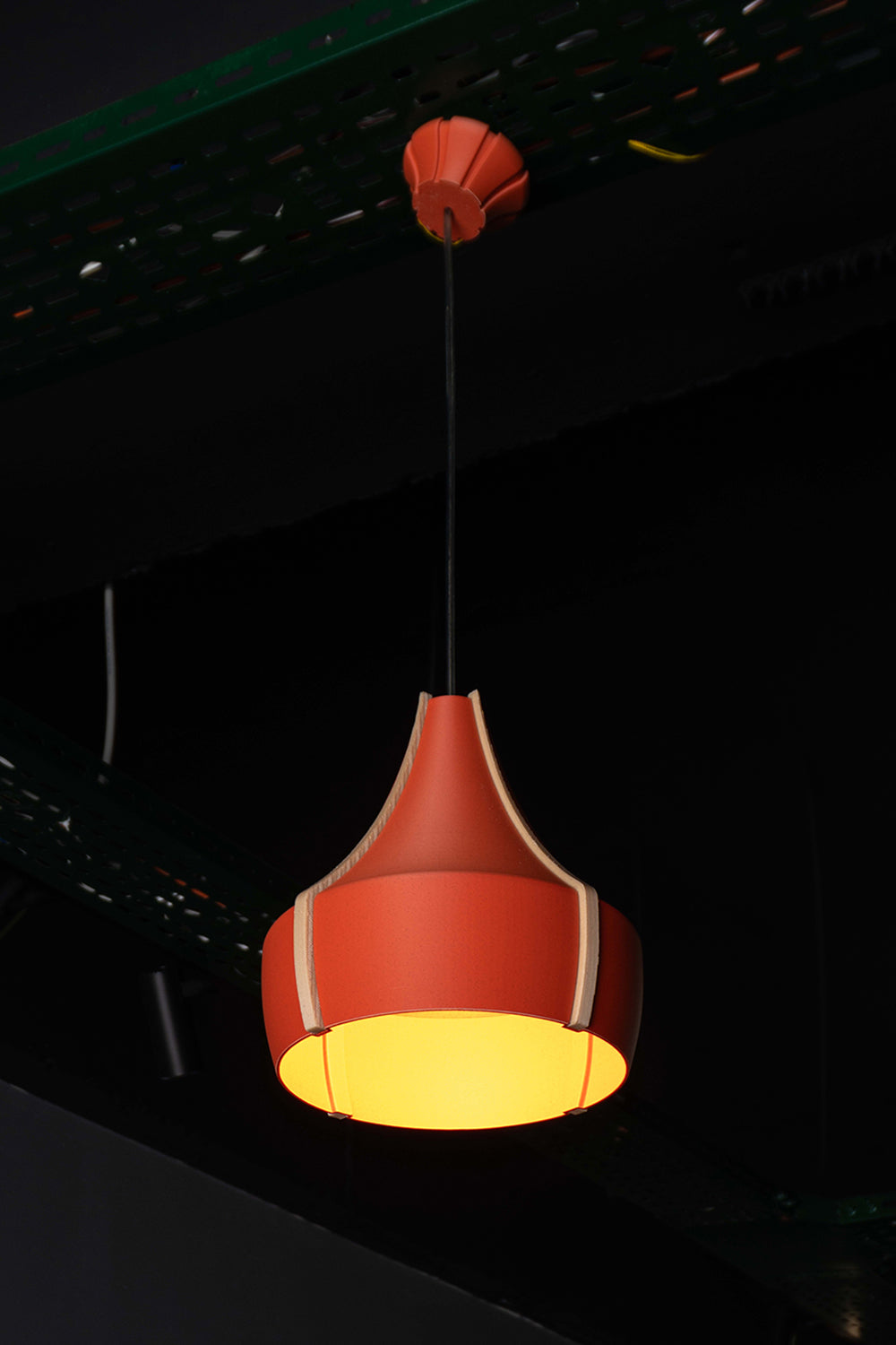 Doğrudan ışık, yumuşak geçişlerle tamamlanıyor.Kalın gövdesi sayesinde ışığı doğrudan aşağı yönlendirir – yemek masası, mutfak adası ya da çalışma alanları için ideal.Keskin kıvrımı sayesinde ışık yandığında gövde çevresinde zarif bir ışık çemberi oluşur.Mat ve pürüzsüz yüzeyi, doğal PLA malzeme ile birleşerek sade ama modern bir görünüm sunar.İki renk seçeneğiyle sunulur:– Bej gövde, koyu kahverengi ahşap sütunlarla sade ve dengeli.– Kiremit gövde, bej sütunlarla sıcak ve canlı.