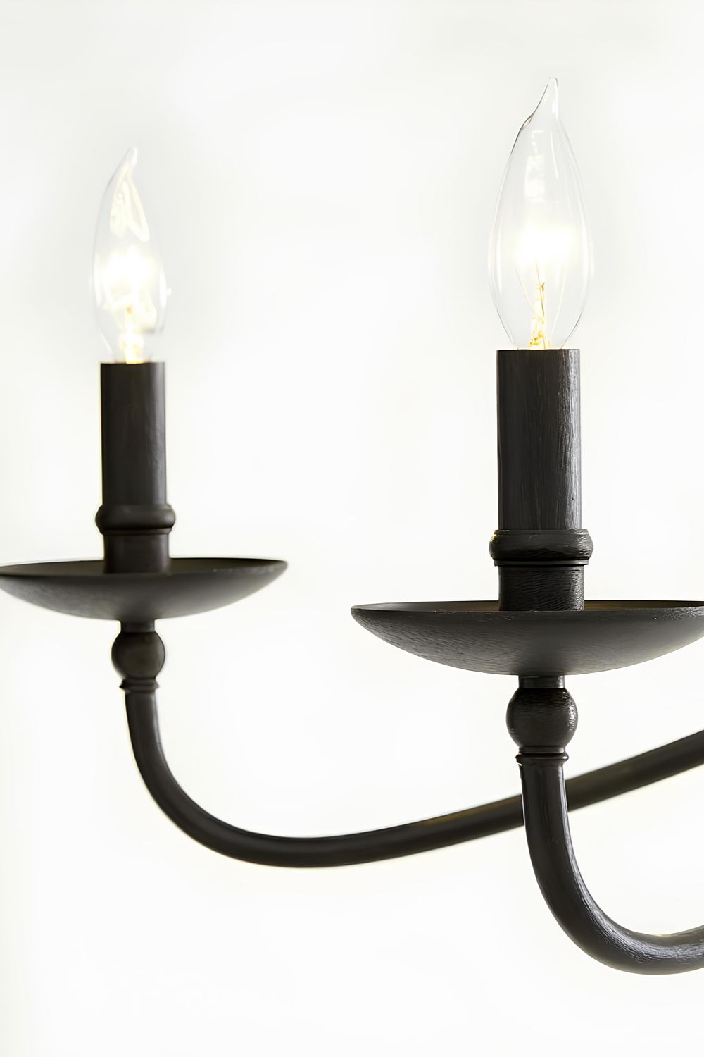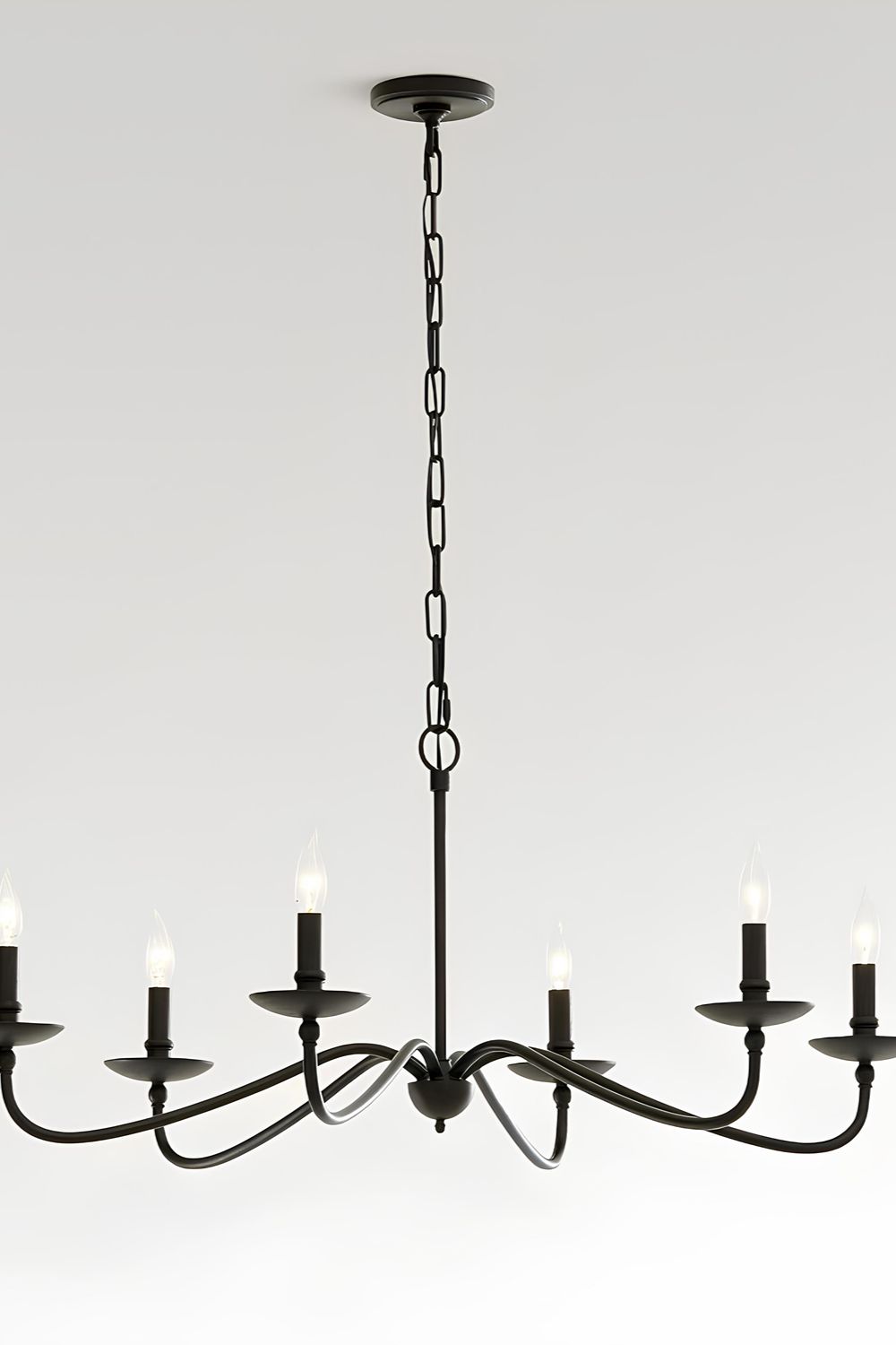 Zamansız şamdan formunu modern, mat siyah kaplama ile buluşturan bu 6 kollu avize; salon, yemek alanı ve butik mekânlara sıcak, davetkâr bir atmosfer kazandırır. İnce kolları ve zarif kepçeleriyle hem minimal hem klasik dekorlara kusursuz uyum sağlar.