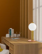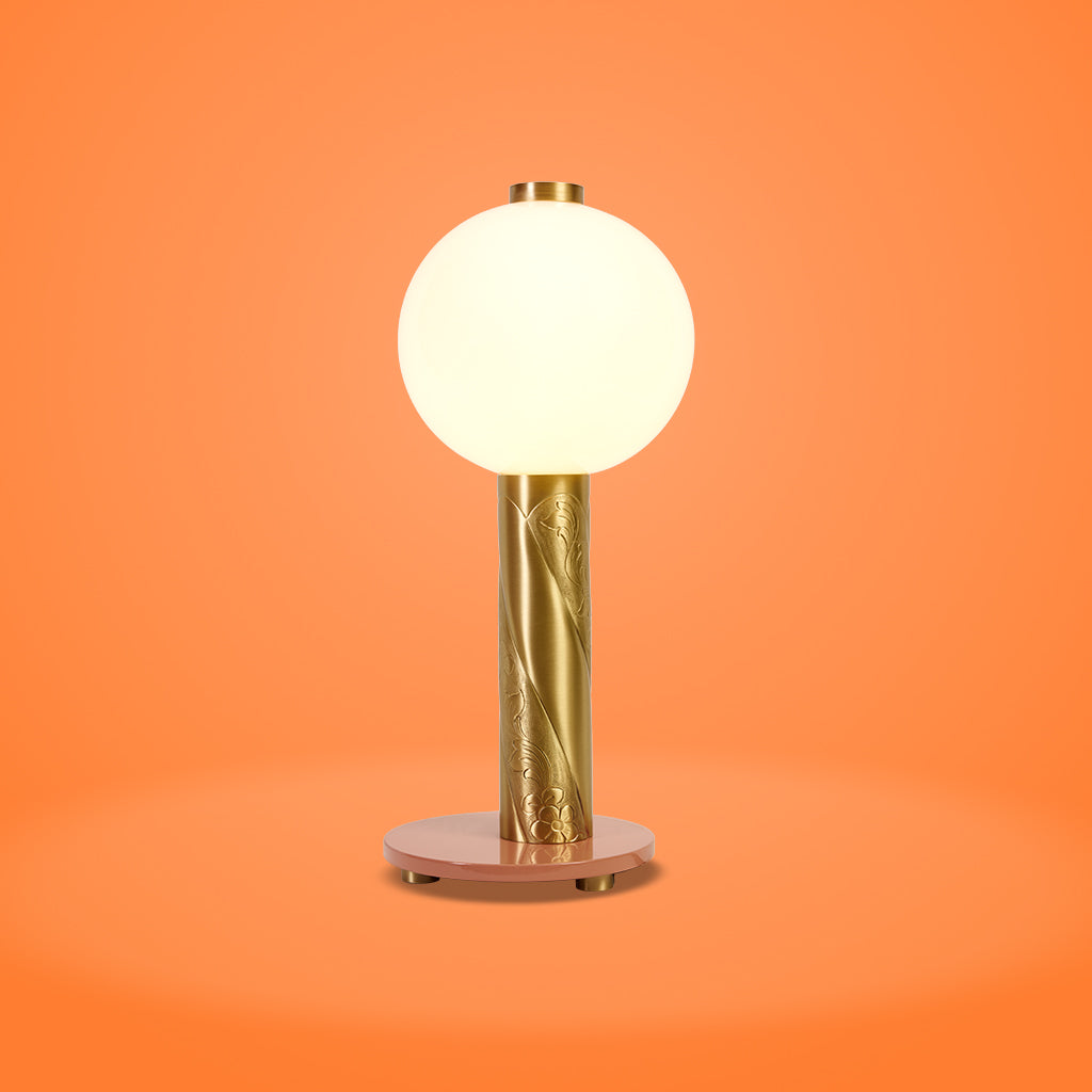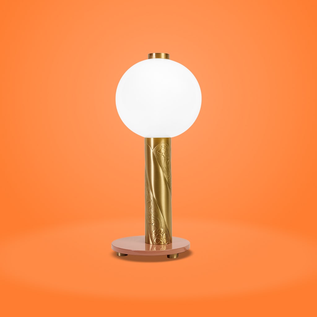 Mat Pirinç gövde ve Kar Beyaz cam ile kombinlenen Akide Masa Lambası 33 cm yüksekliğinde ve 14 cm enindedir. Standart olarak 3000 K ışık rengine sahip olan ürün toplamda 6 Watt gücündedir.