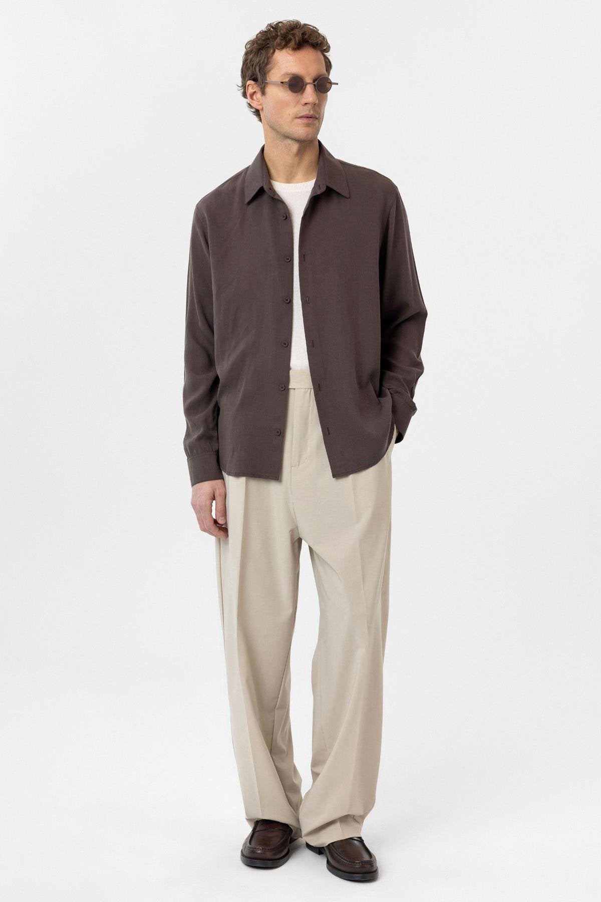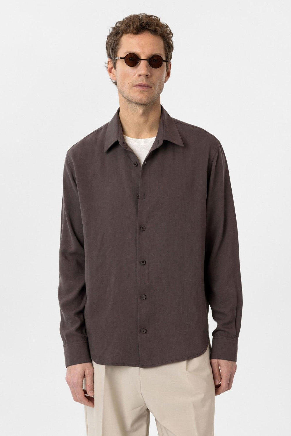 Kahve Relax Fit Liyosel Kumaş Erkek Gömlek