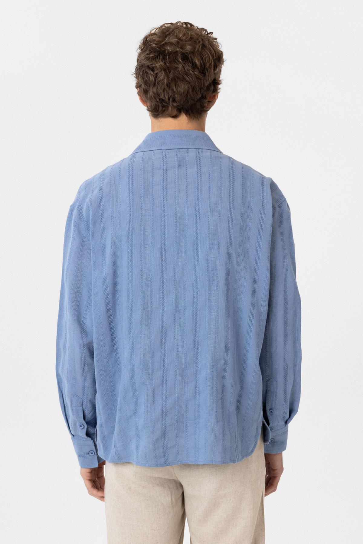 Bebe Mavi Dokulu Jakarlı Pamuklu Erkek Gömlek