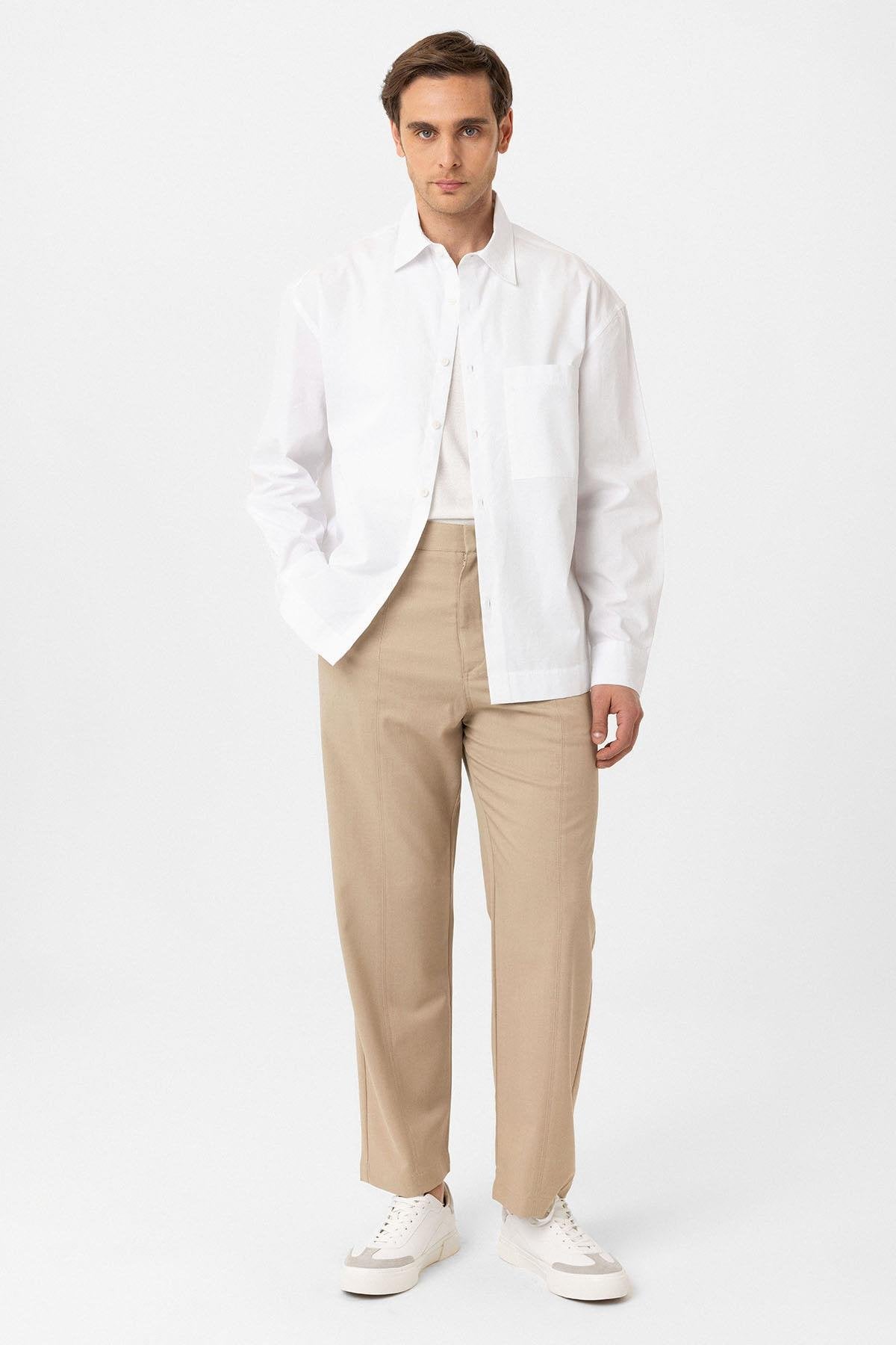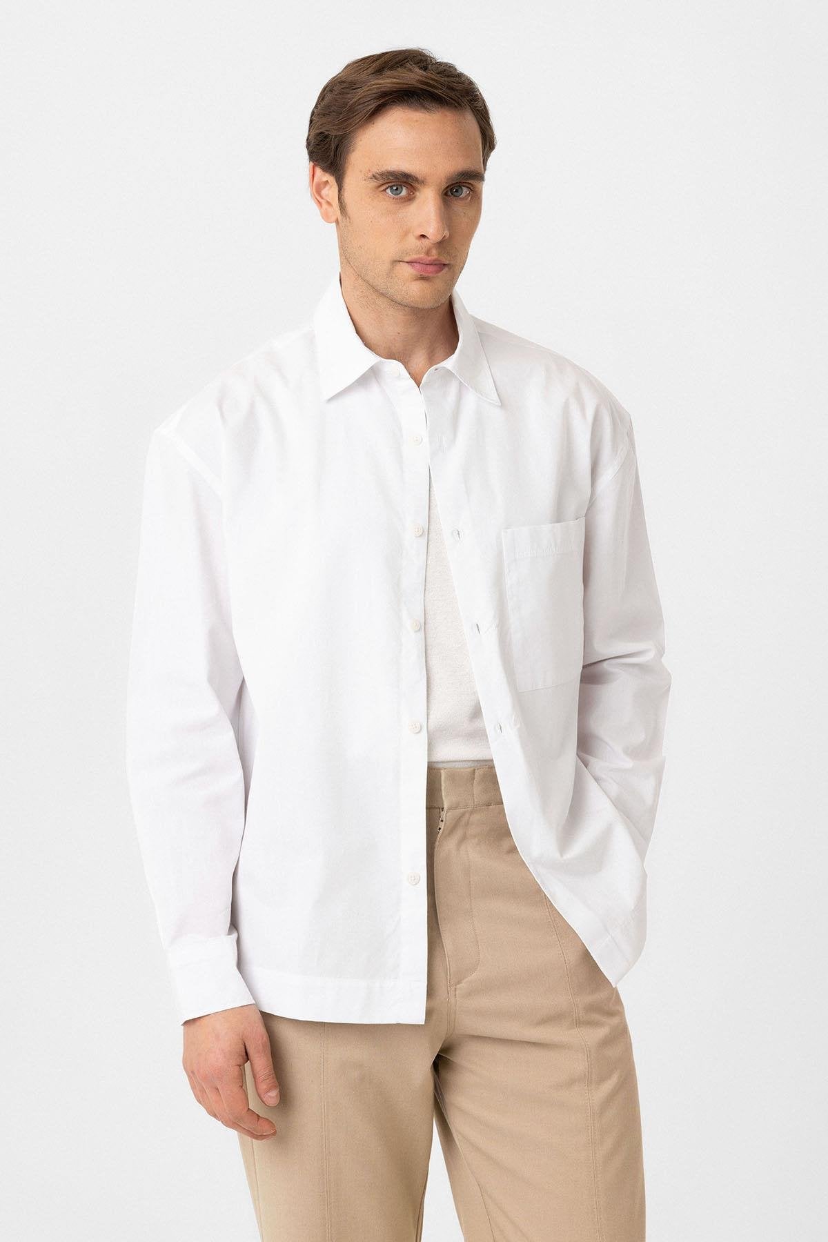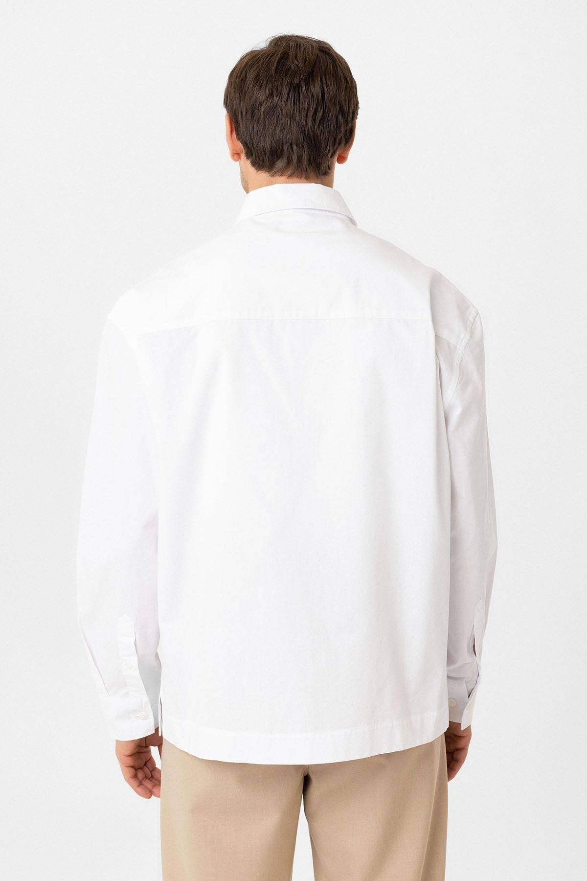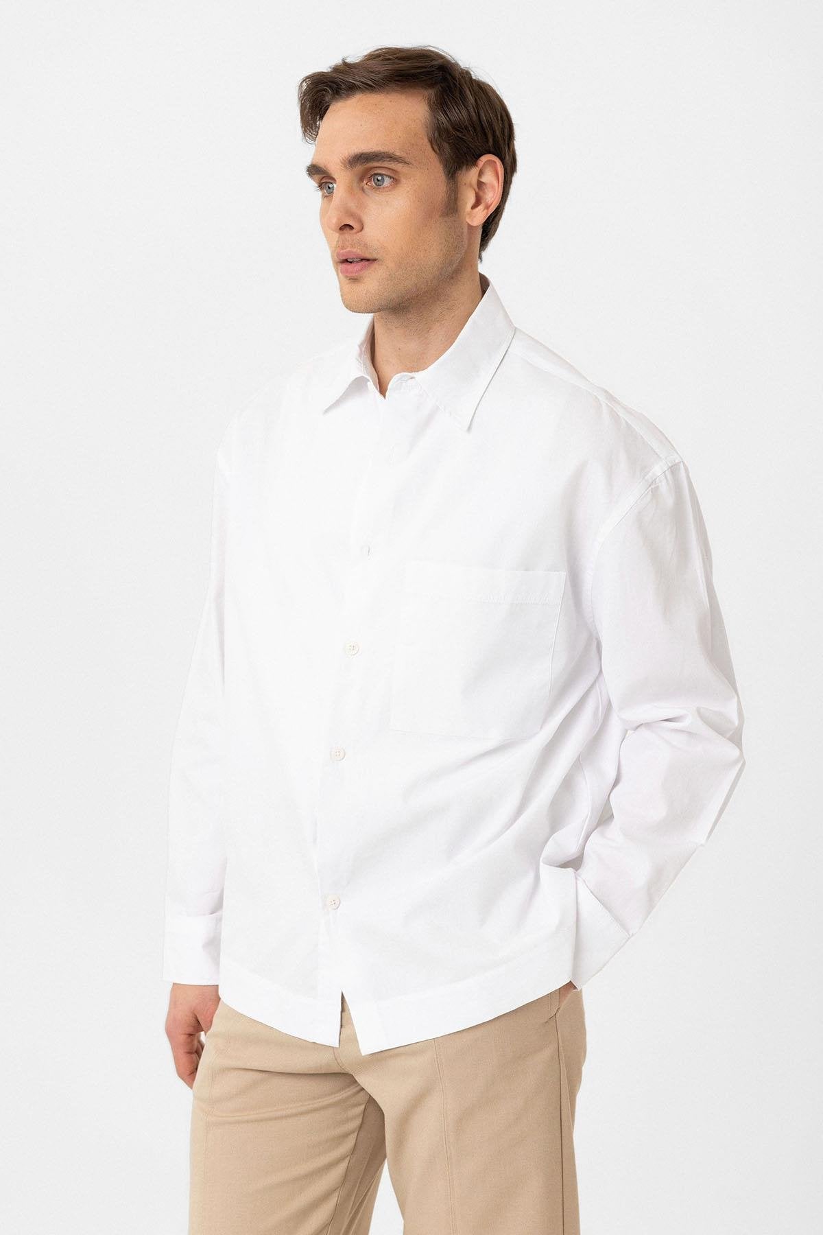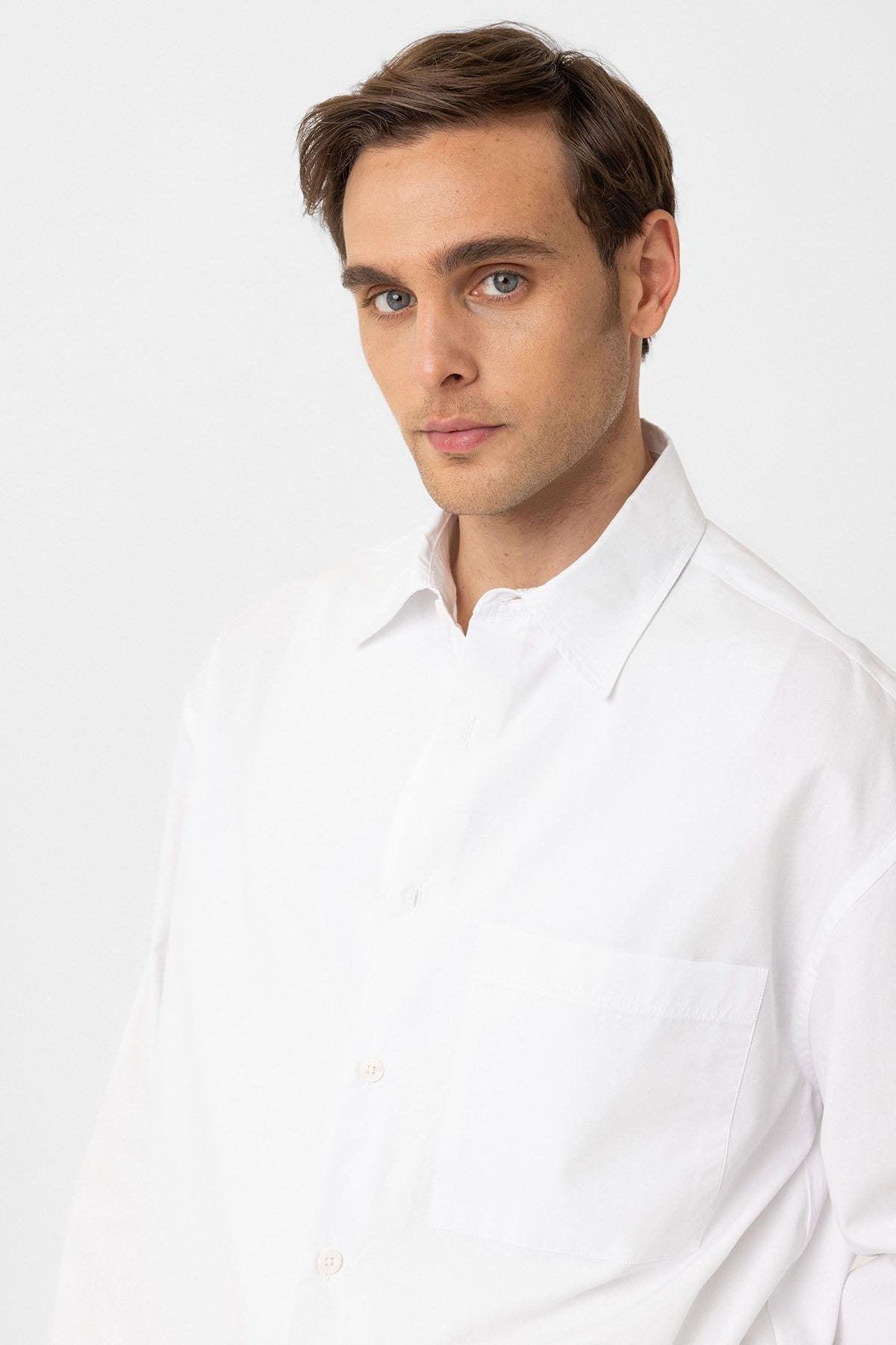Beyaz Pamuklu Relaxed Erkek Gömlek