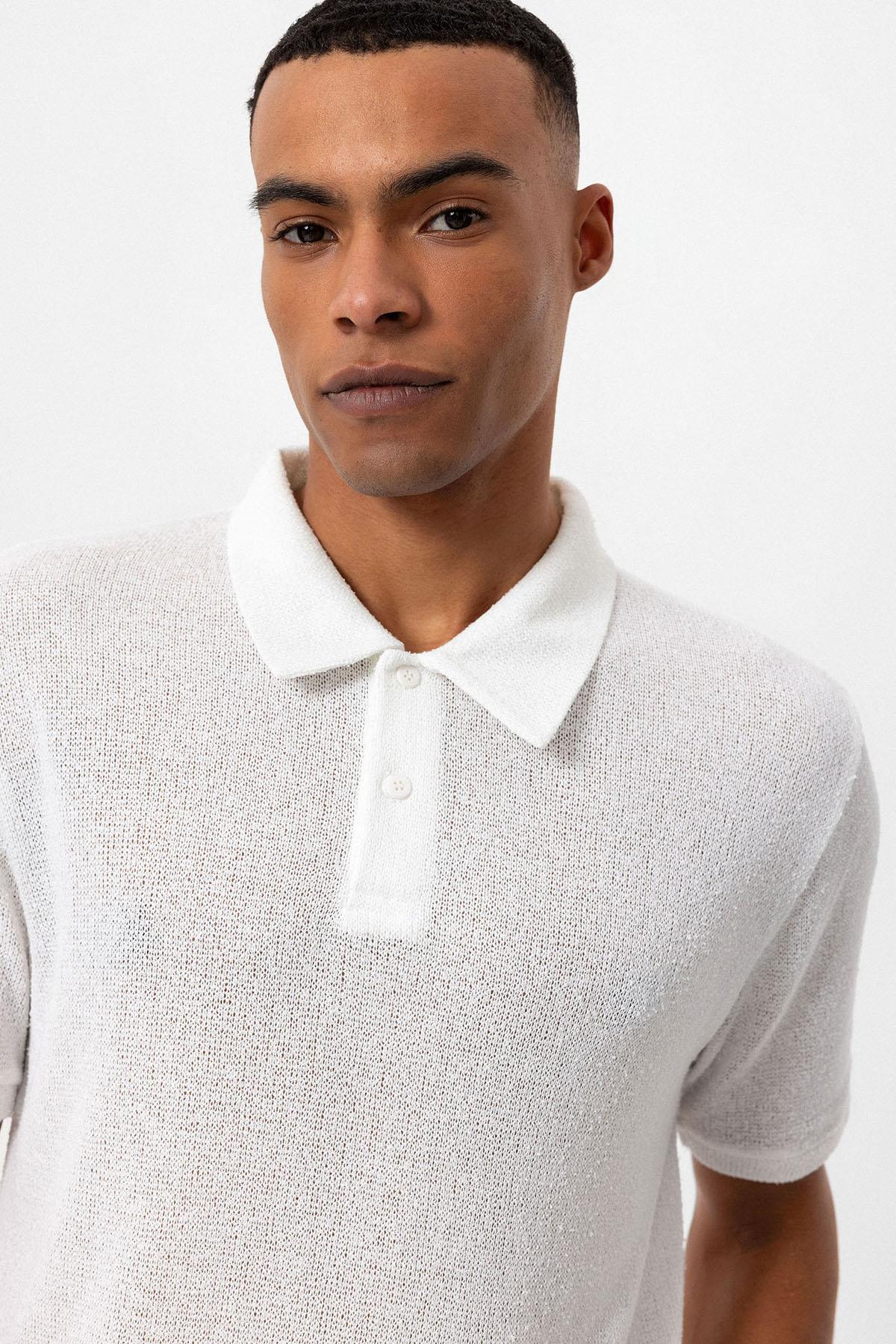 Beyaz Polo Yaka Örme Erkek T Shirt