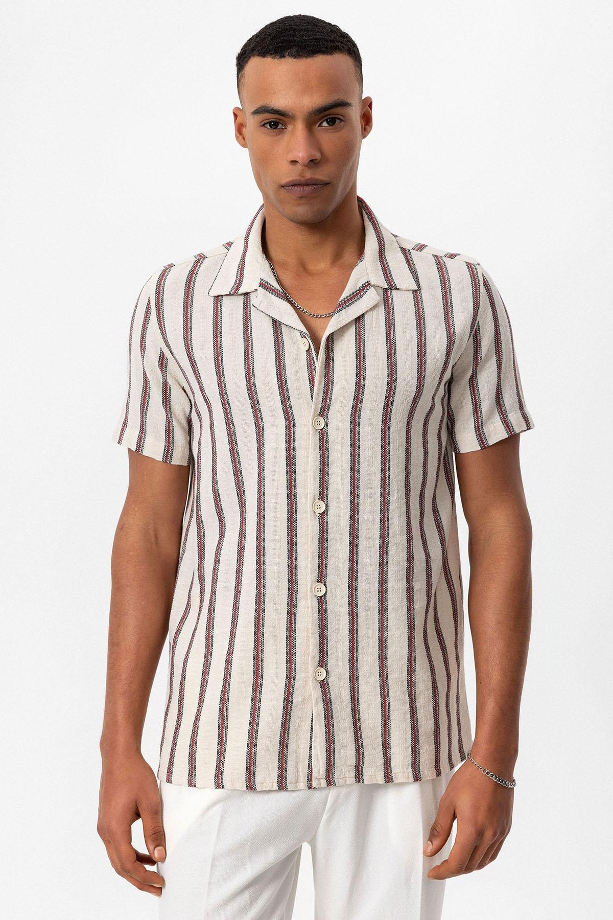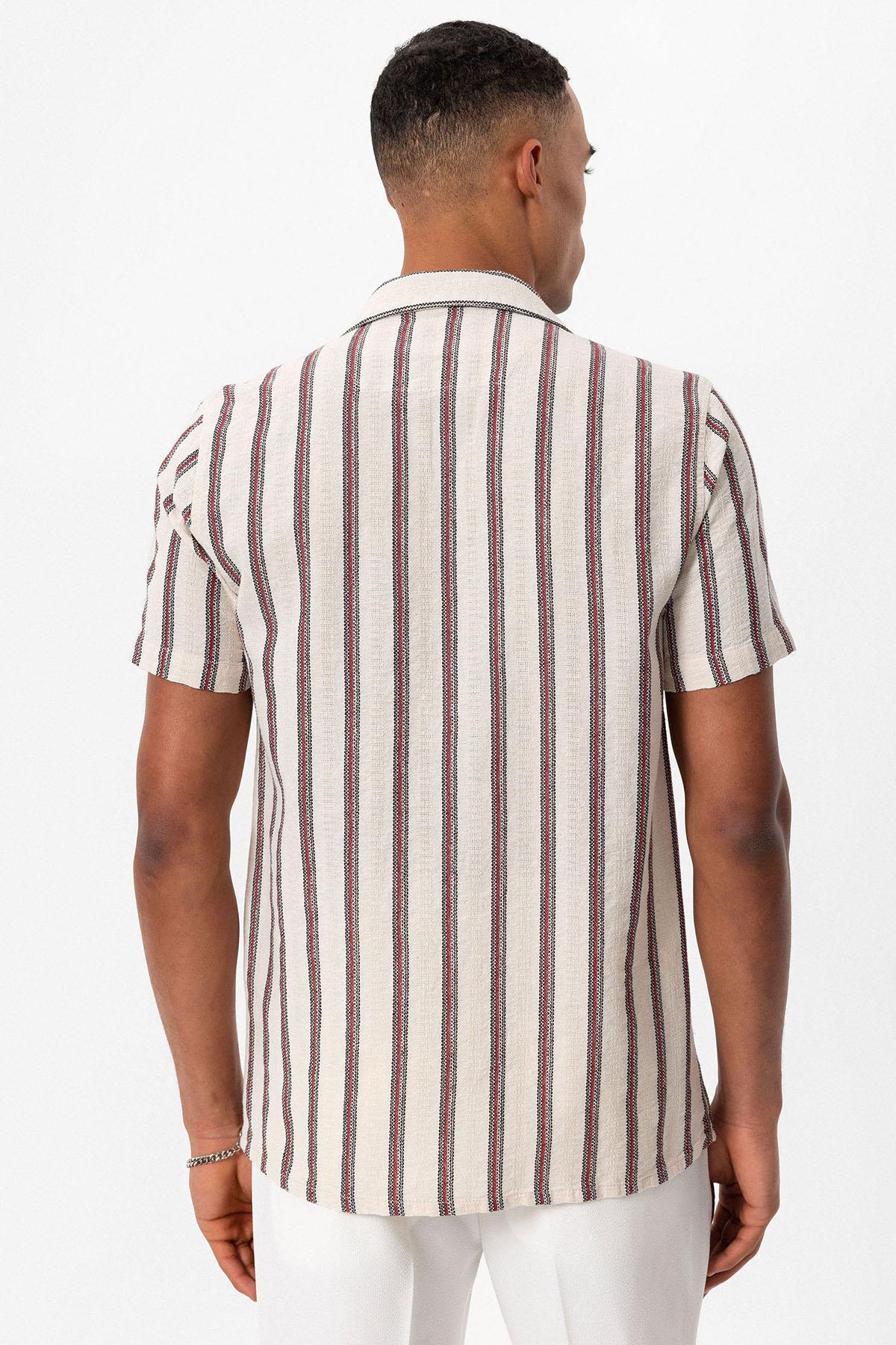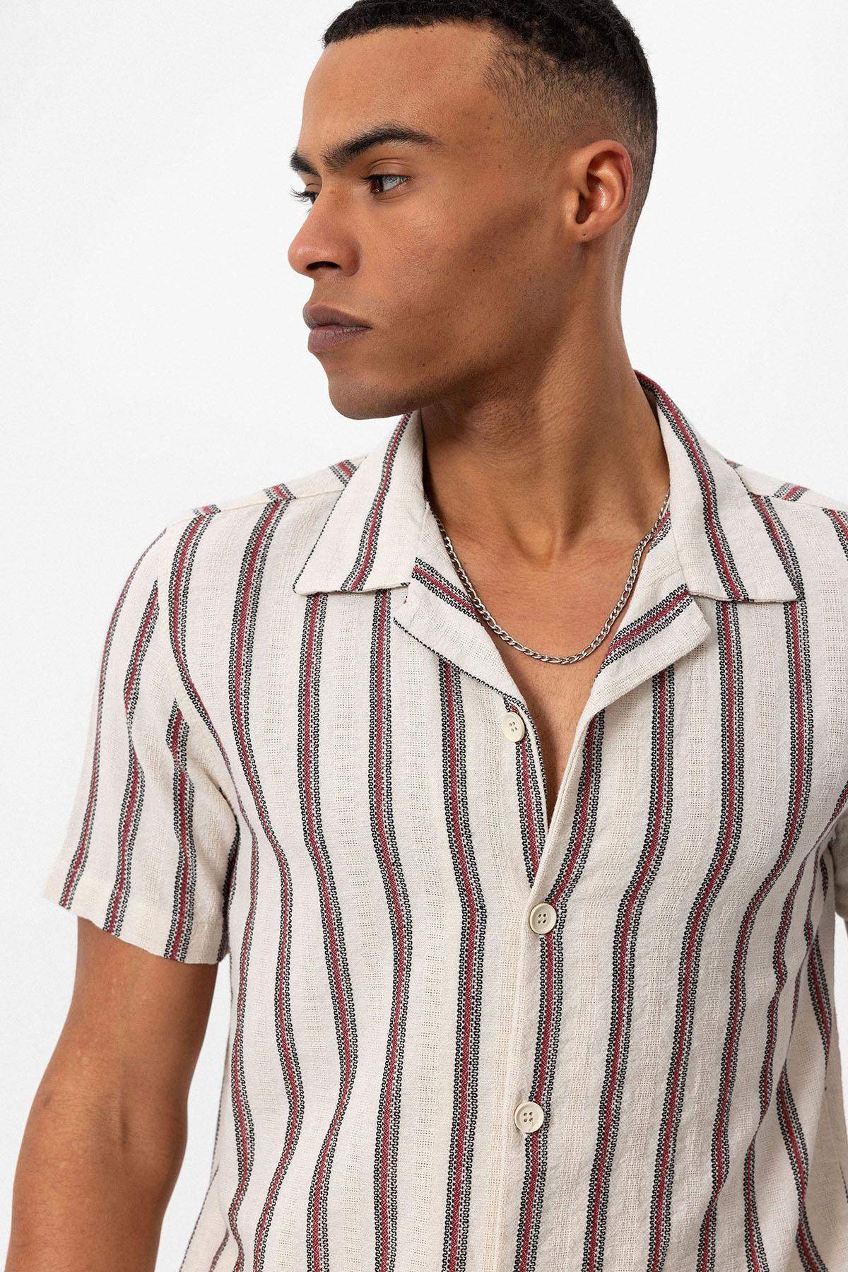 Bordo Apaş Yaka Çizgili Erkek Gömlek