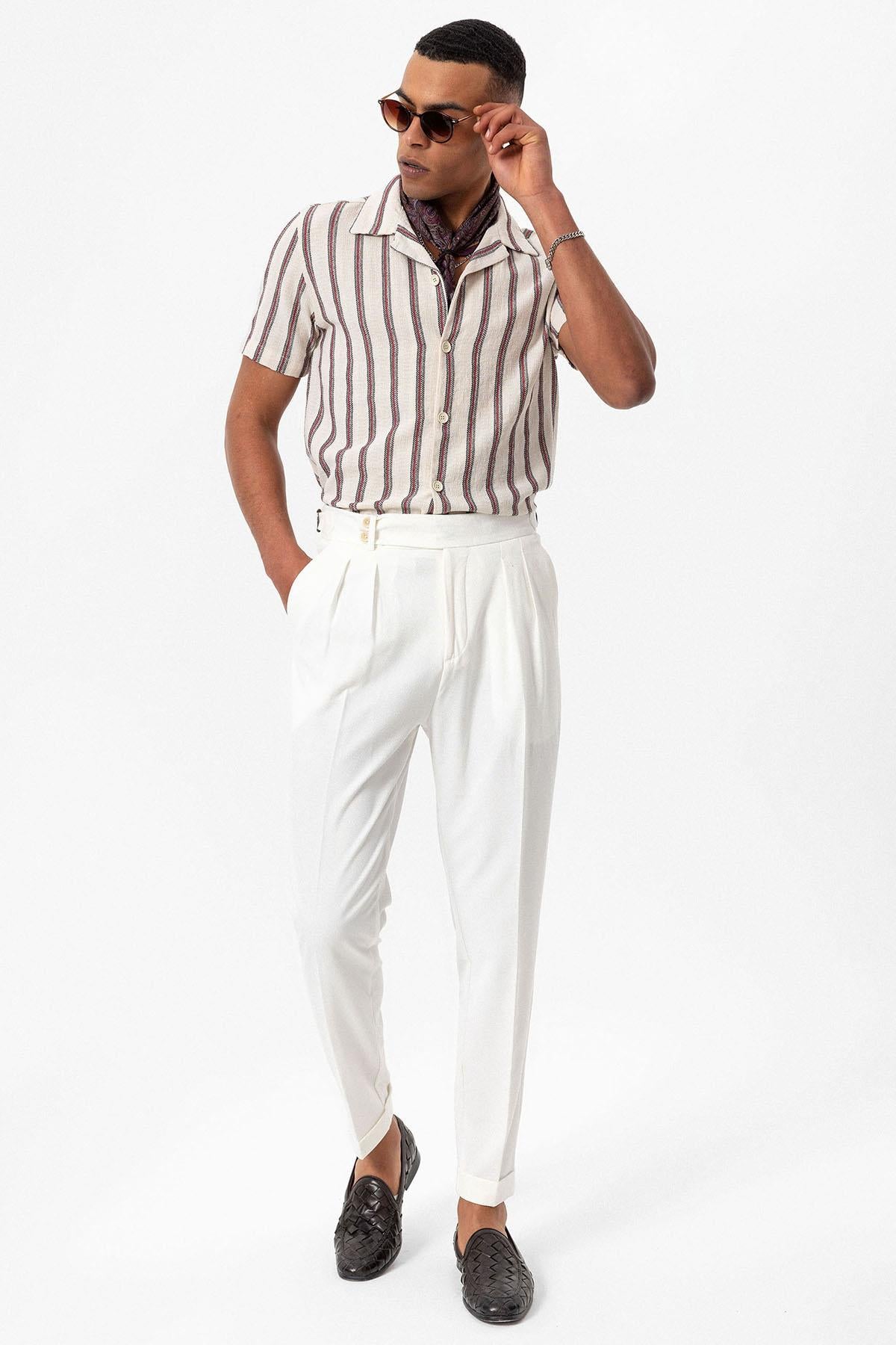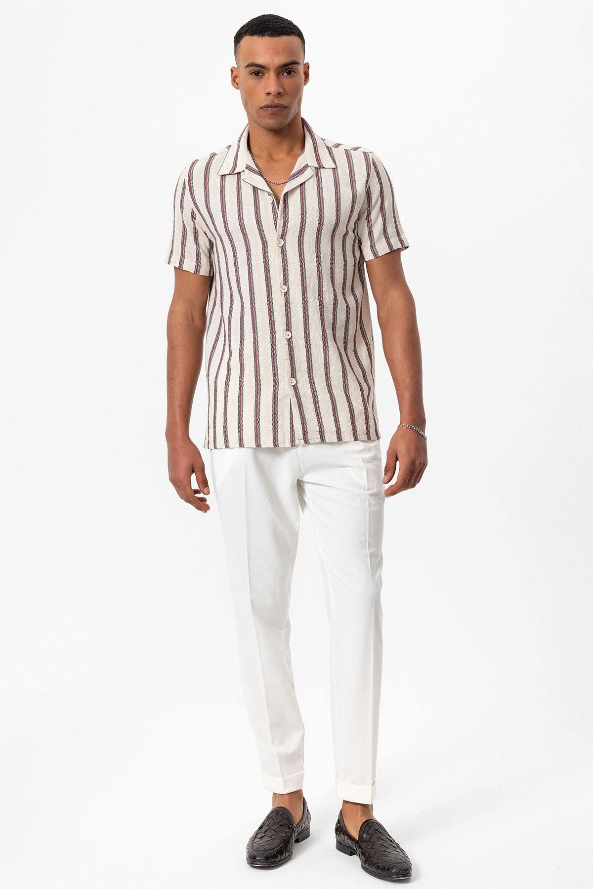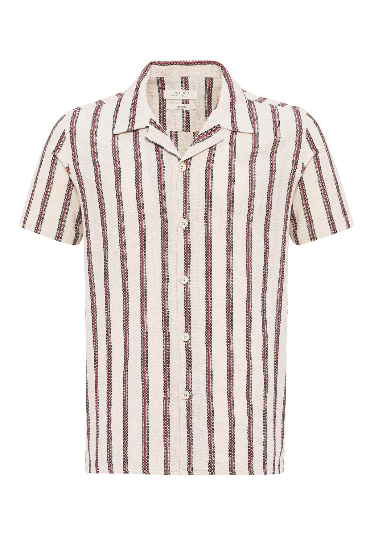 Bordo Apaş Yaka Çizgili Erkek Gömlek