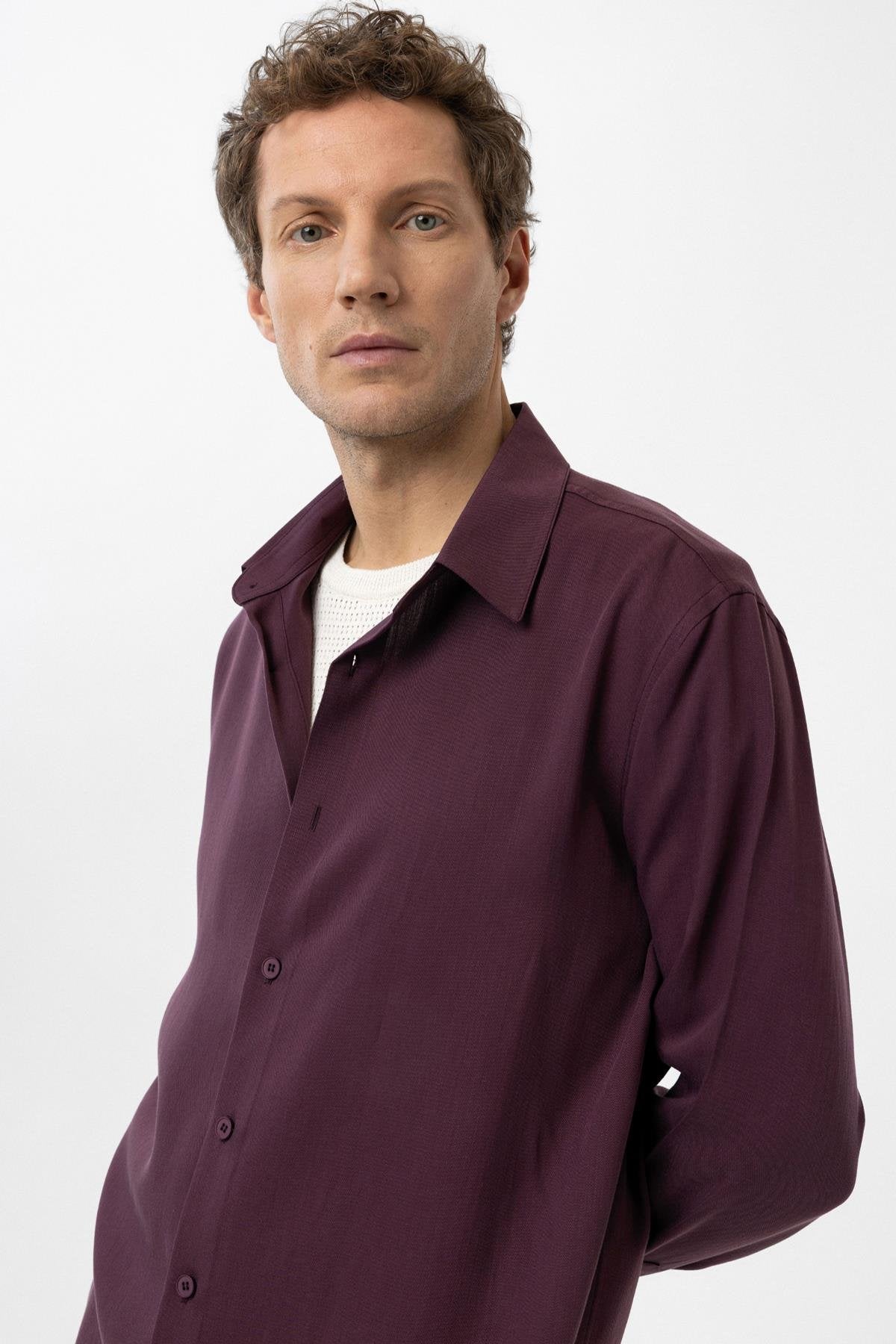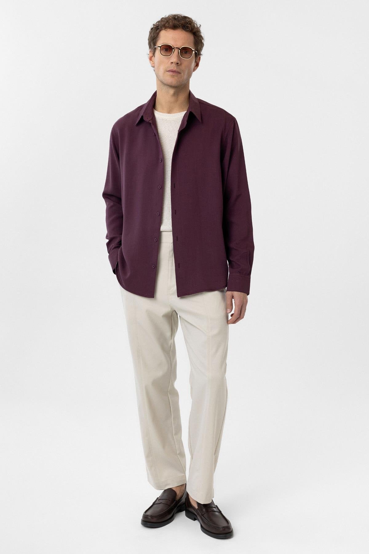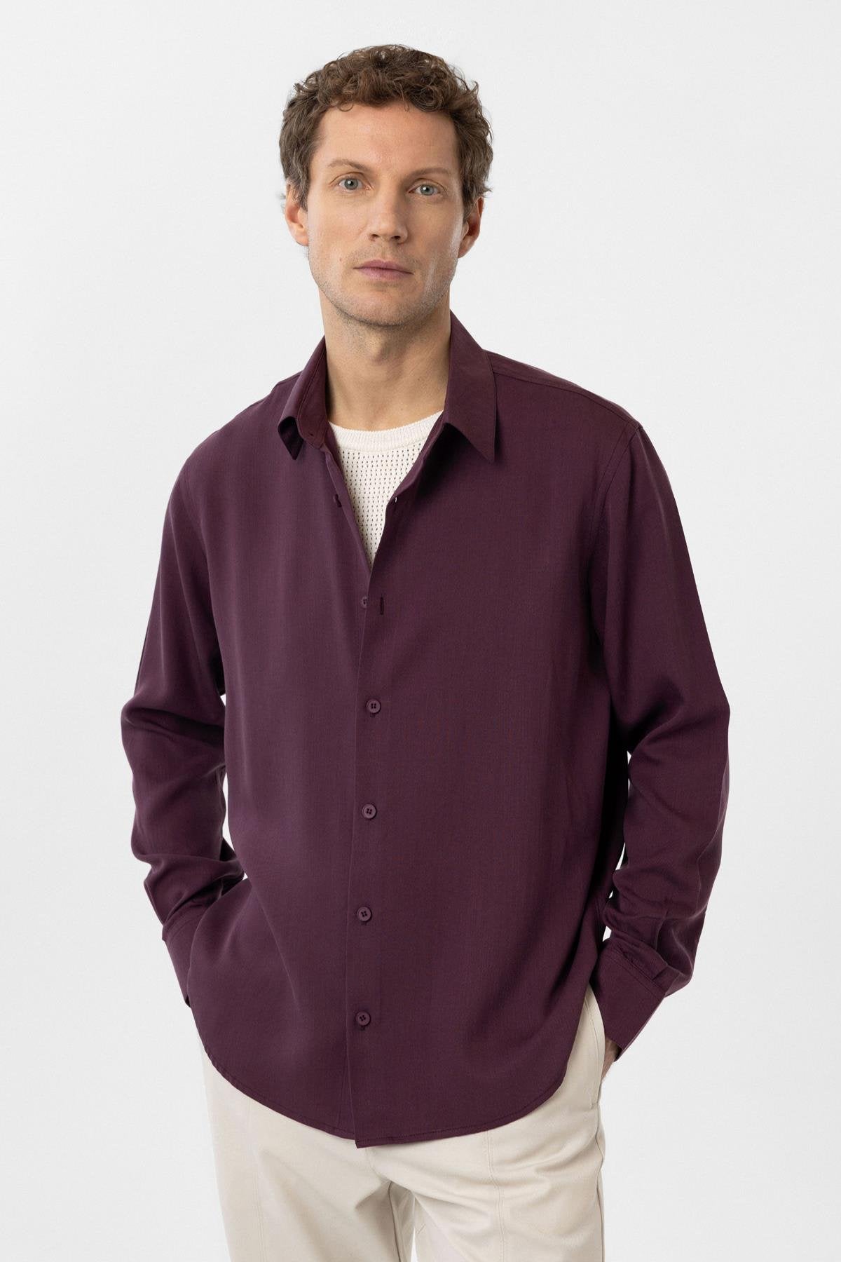 Bordo Relax Fit Liyosel Kumaş Erkek Gömlek