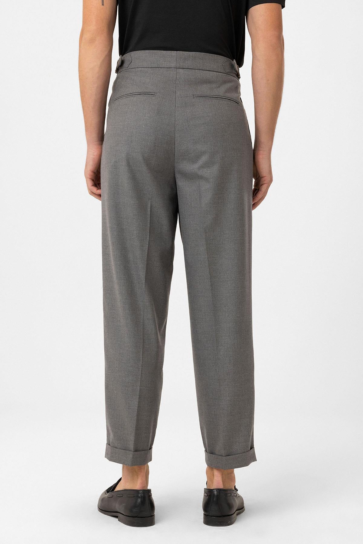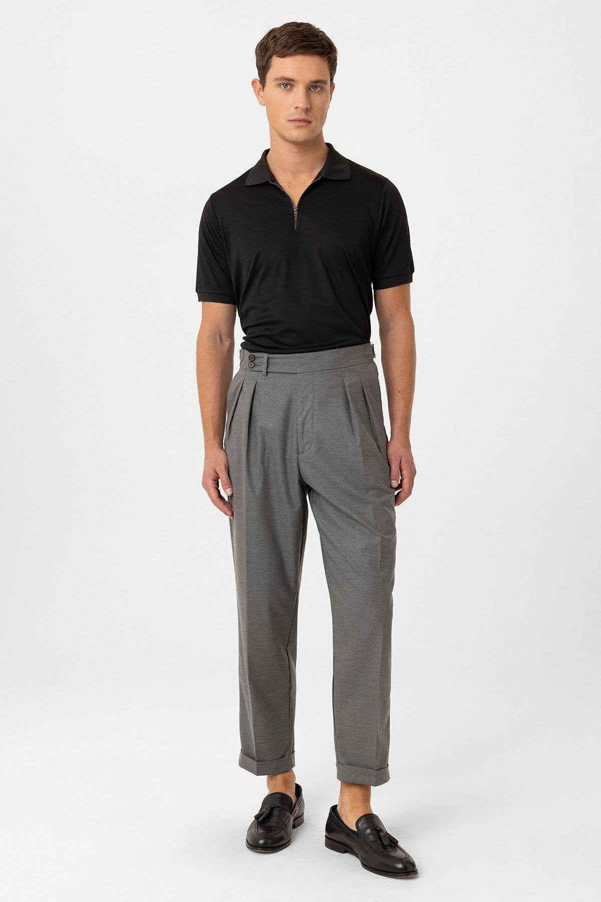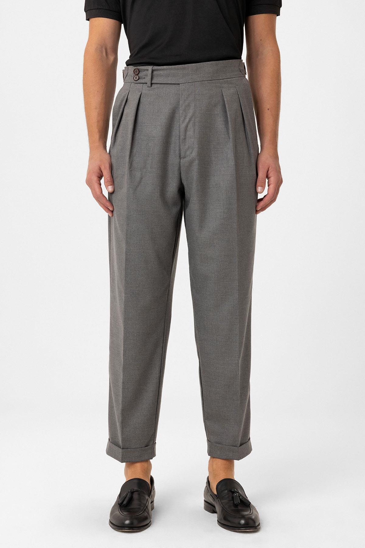 Gri Pileli Yüksek Bel Erkek Pantolon